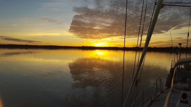 Our anchorage in the South Edisto River, not far from Beaufort, SC. We shared this large anchorage with one other boat. Right after this picture we had to run below to get away from the mosquitos!!!!!!