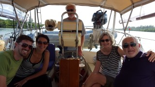 Our friends Sharon and Dick, along with their son and daughter-in-law, met us at Loggerhead Vero Beach Grand Harbor Marina on Saturday the 9th.   We celebrated Sharon and Doug’s shared birthdays (Jan. 7th) with lunch on the beach, then went back to our boat for a ride on the ICW.