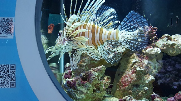 Lionfish – an invasive menace to the Atlantic waters. The Red Lionfish and the Common Lionfish can eat fish twice their length, have few predators, and a single female can spawn over 2 million eggs per year. We have heard that some restaurants now offer Lionfish on their menues – we’re not sure about their appeal as an entree. |