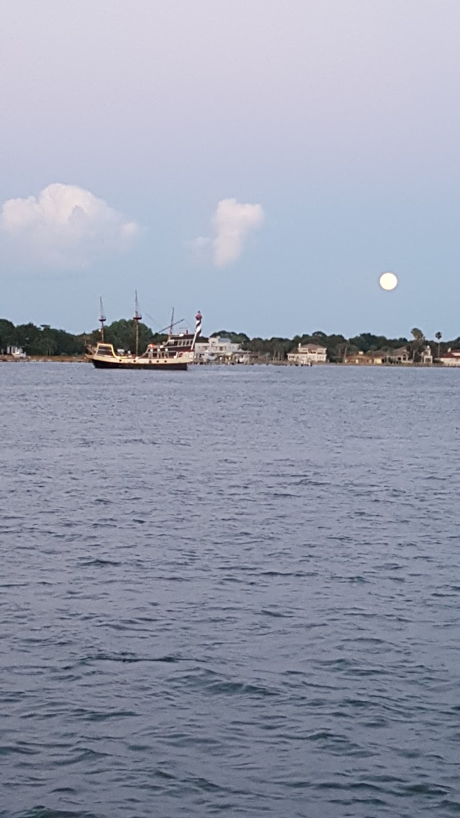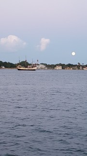 | The pirate ship on its Saturday evening cruise, full of frivolity and song. |