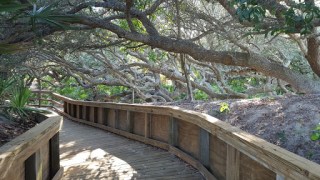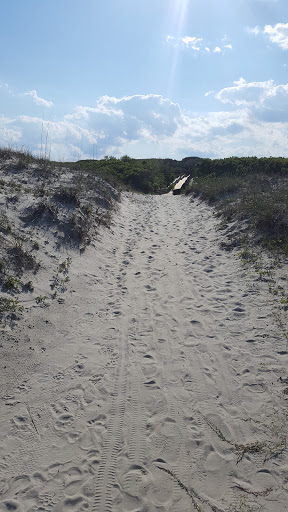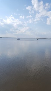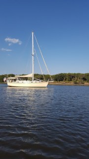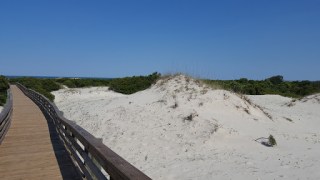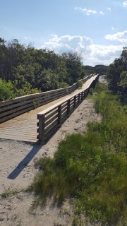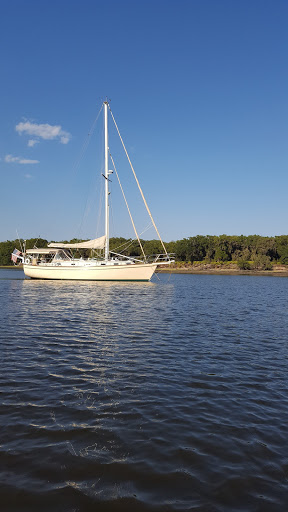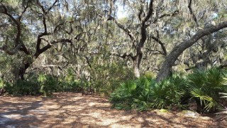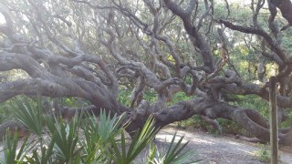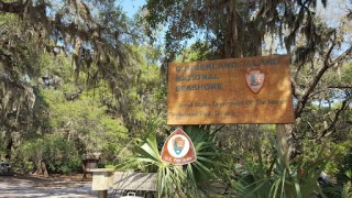 | We arrived at Cumberland Island mid-afternoon, and we soon wished we could linger here for longer than an overnight stay. Since our time was limited, we quickly dinghied to shore from our anchorage off the Sea Camp docks. Trails on the island will take you to the ocean, campsites, and several historic districts which include remains of homes and mansions from the late 1700’s and 1800’s ( James Oglethorpe, Geo.Washington’s Gen. Greene, and Thomas Carnegie and his wife were among some of the residents here). We will have to see these historic sites on a future visit – for now, we have to get as far north as possible and reserve a dock for the Memorial Day weekend, since a tropical system is in the weather forecast. |