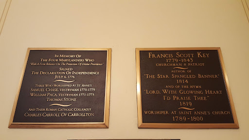 The plaque on the right honors Francis Scott Key, who worshipped at St. Anne’s Church.
