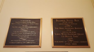 The plaque on the left is in memory of the four Marylanders who signed the declaration of Independence.