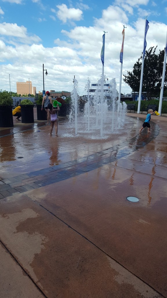 On Thursday morning, we went directly across the street to d’Egg for breakfast. Delicious, as always! There is a beautiful shopping mall right next door to the restaurant that showcases local art, jewelry, clothing, food – you name it – they do a great job promoting small businesses and artisans in the area. We had planned to go to dinner that night at Grain, the rooftop bar at the Hilton, but the weather forecast started looking much worse than what was predicted earlier. Sure enough, by early evening the winds really intensified, prompting the storm sirens to go off (why does this seem to happen whenever we pull into town?!?). Local newscasters advised viewers to treat this like a tornado, although what came through was straight line winds exceeding 70 mph, heavy rain, thunder and lightning. We put out extra lines and fenders, and had no difficulties from the storm.