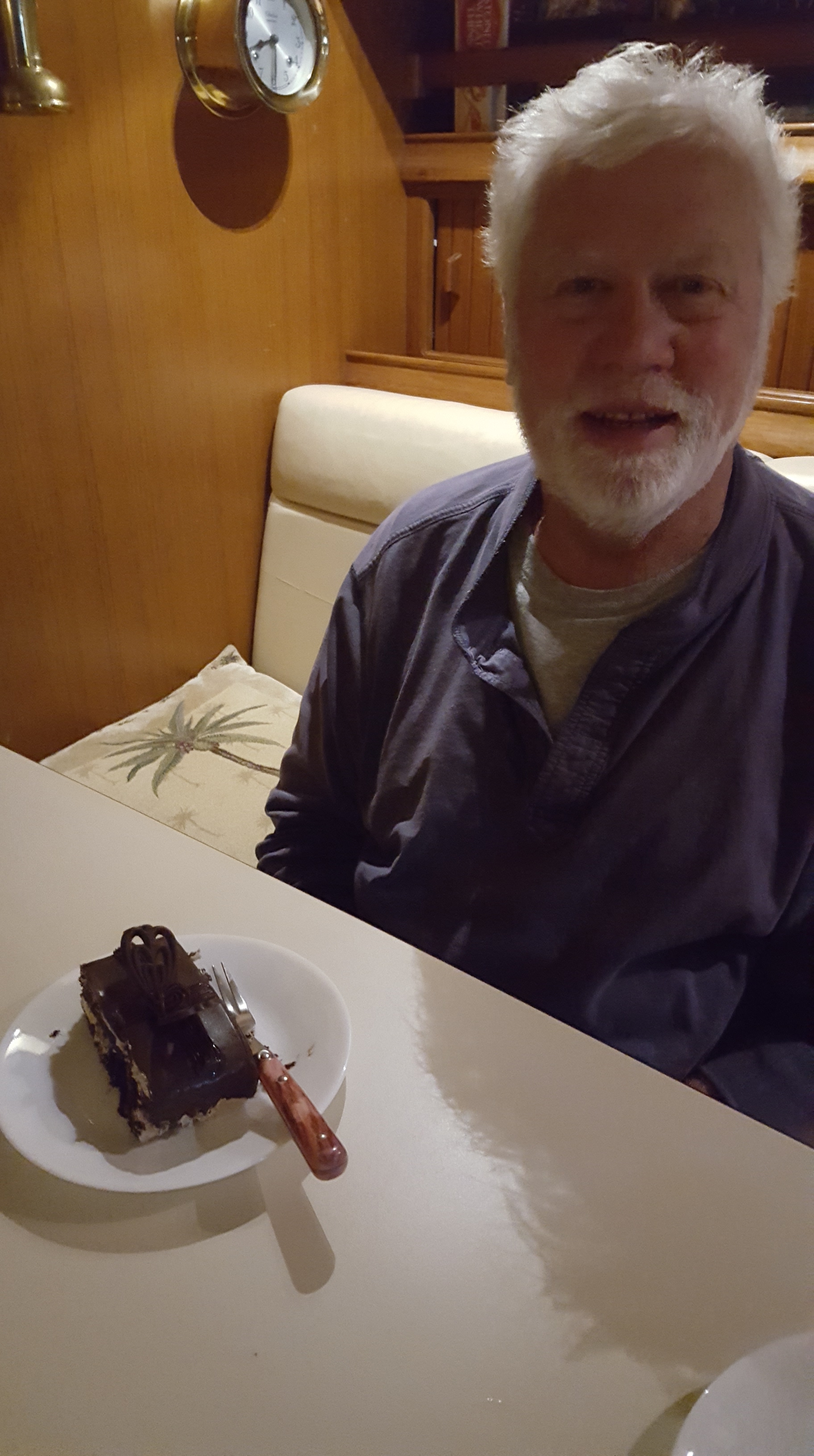 It was a two-day celebration for Doug’s birthday, the first being on the 6th with just the two of us, and the second on the 7th with friends Sharon and Dick, who are in Vero Beach visiting their children (while continuing their years-long exploration of the US and Canada in their RV). Sharon and Doug share the same birthday, so Dick organized a cookout at their campsite. Great food, great friends, and a great day.