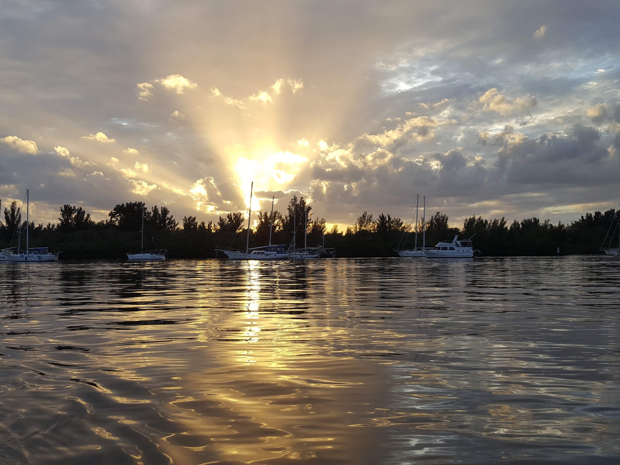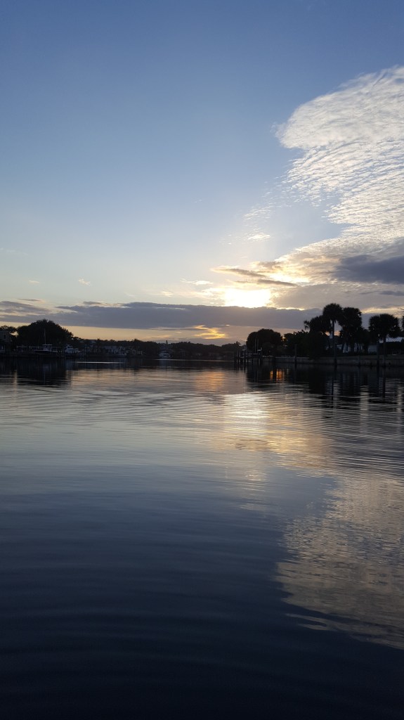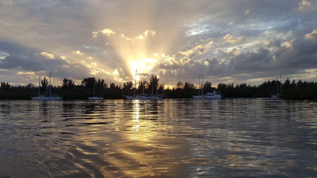 Vero Beach is also nicknamed Velcro Beach by cruisers, and we came to understand why over the past three weeks. Almost everything a boater needs is available in Vero: a protected mooring field in inclement weather; free transportation to the beach, restaurants, shopping, etc; a bank of dinghy docks with a potable water station; bathrooms, showers, laundry, ice, fuel, mail delivery and pickup; pumpouts at your boat three times per week; waterside restaurants accessible by dinghy; an art museum, theater, boutique shops, post office, dog park, all within walking distance; and, a boat diver/repairman whom we would happily nominate for sainthood for a variety of reasons after he helped us over the past 3+ weeks. So, it’s easy to get “stuck” in Vero, whether it’s for the convenience and comfort of the place, or the protection offered when the weather is nasty. To be sure, we have had more than our share of miserable weather this month, but there have also been some beautiful days in between. Here are some more highlights of our stay in Vero Beach.