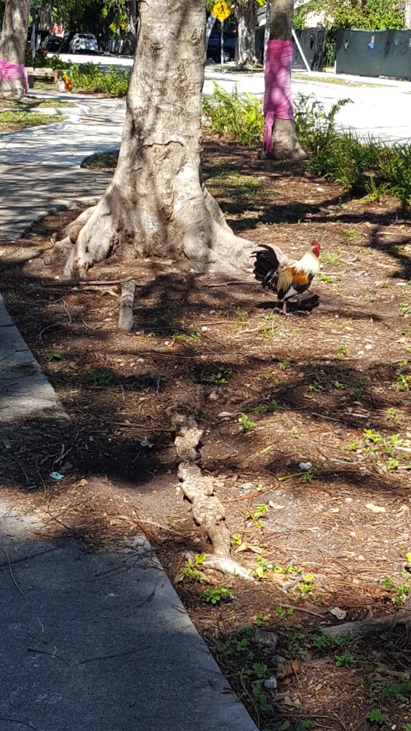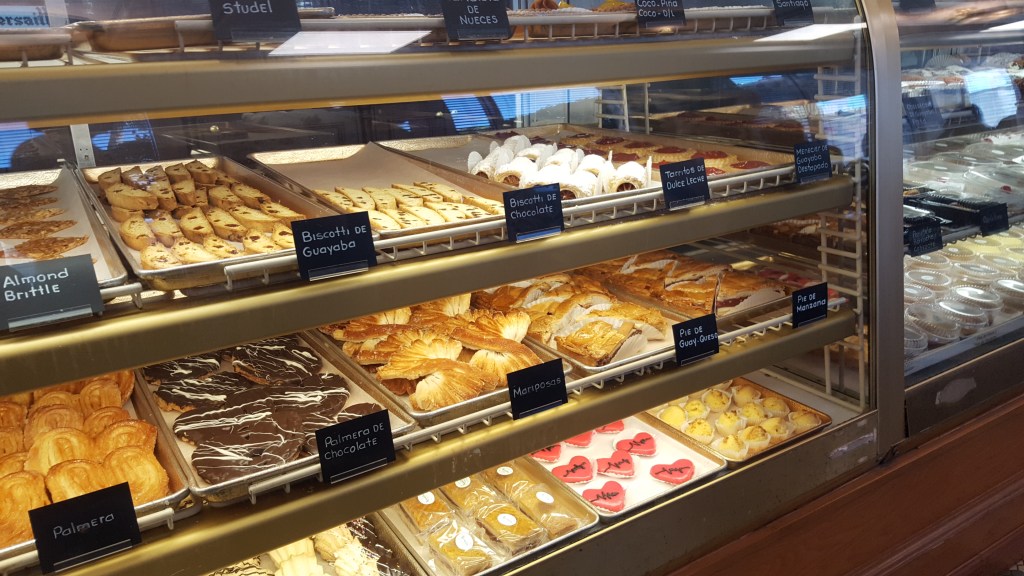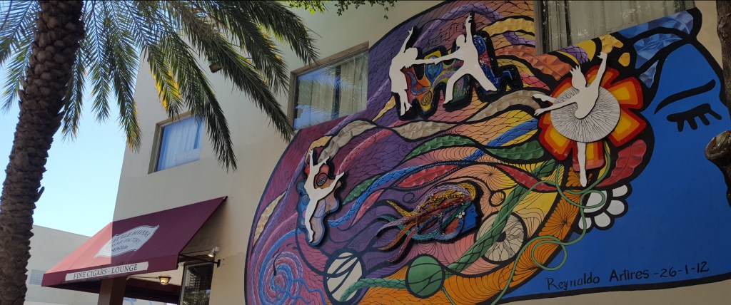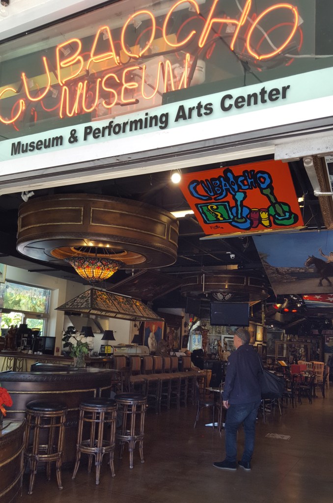 Super Bowl Sunday, and our plan for the day did include watching the game, but first we took our dinghy to shore, walked to the bus stop and caught the bus to the central station, transferred to another bus, and disembarked on Calle Ocho (8th St.) in Little Havana. We had breakfast at Versailles Bakery, then took another short bus ride to the heart of Little Havana on Calle Ocho to see the art galleries, boutiques, restaurants, cigar shops, and parks.