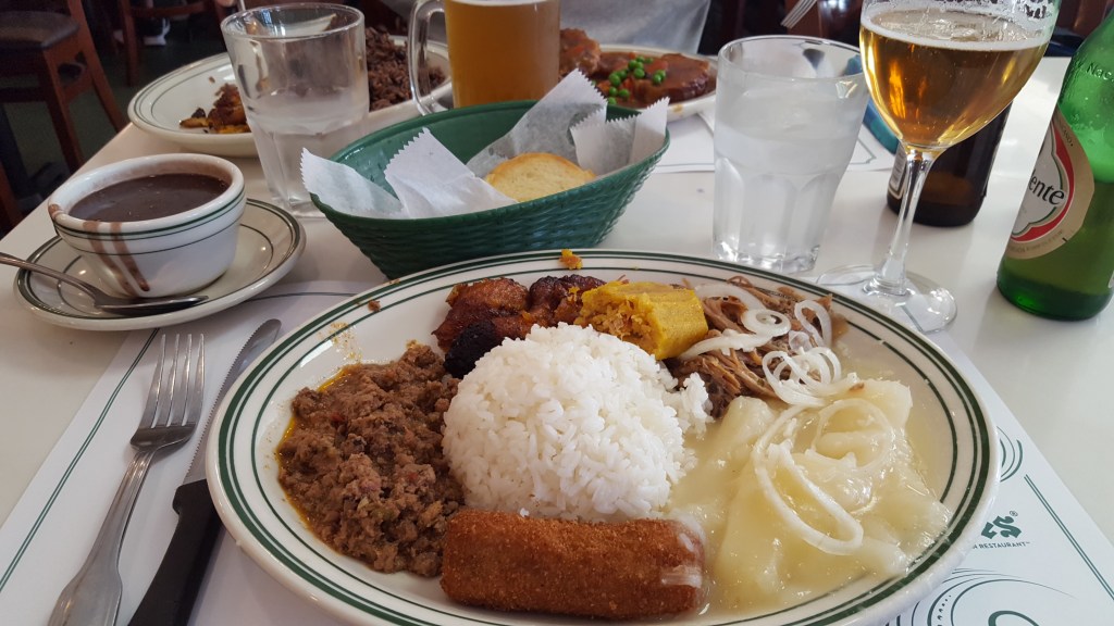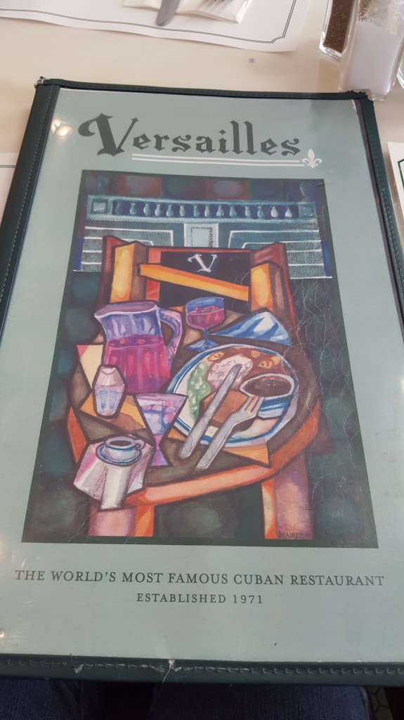 Towards mid-afternoon, we took the bus back to Versailles Restaurant (“The World’s Most Famous Cuban Restaurant”) for a late lunch. Versailles, named after the French palace, was opened in 1971 by Felipe Valls, a Cuban immigrant – it had seating for eight patrons, and now it accommodates over 400. It is a hub for locals, politicians and newscasters, as well as a destination for tourists and, occasionally, celebrities. It was in the news during the custody battle for Elian Gonzalez, on the occasion of Castro’s death, and when President Obama began talks of normalizing relations with Cuba.