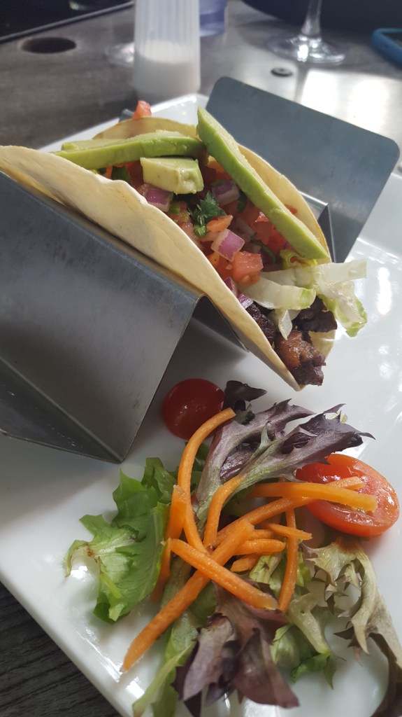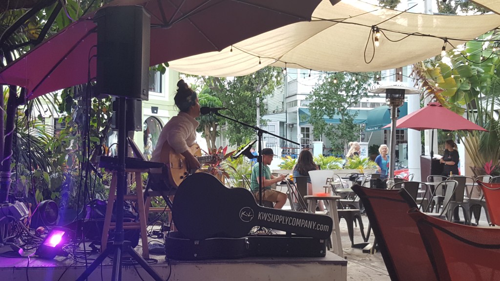 We finally tracked down Marjory Lee at “Viva Saloon” Argentinian Steakhouse. This establishment, built in the early 1900’s, has quite a history: once a brothel, then a hotel, then a striptease club, and now a casual pub and restaurant with a large outdoor patio, where we sat and enjoyed excellent food and Marjory’s beautiful voice and guitar talent. From South Carolina to Nashville to Key West and internationally, her career had its early beginning with the gift of a guitar from Earl Klugh; she has a music degree from Belmont University in Nashville, is a BMI writer, and the list goes on. Two weeks ago, we heard her play all of two songs as we passed by the Galleon tiki bar, and I asked someone who seemed to know her, “WHO is she?” He told us her name, saying “She’s *very* talented!” So glad we could hear her again!