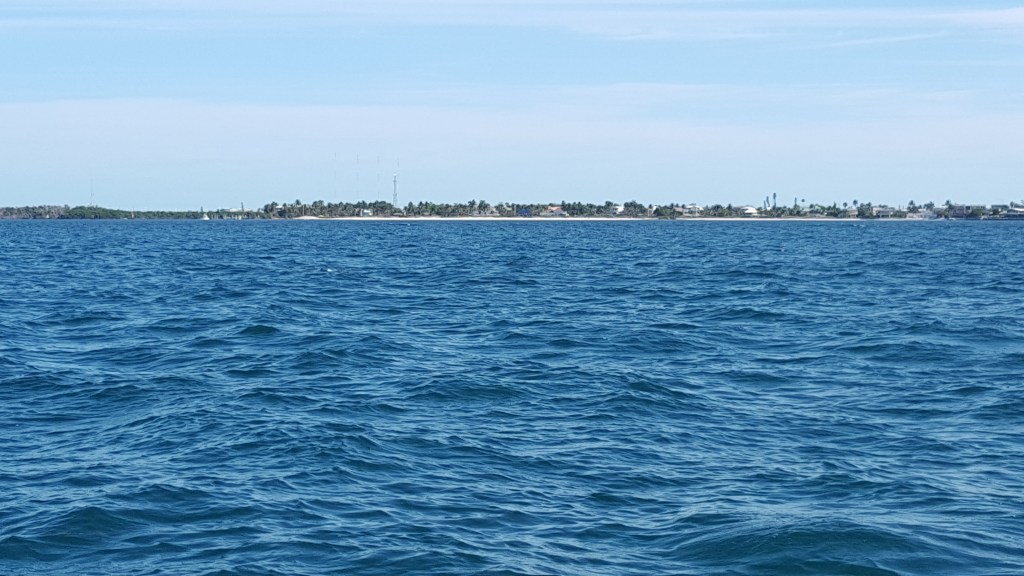 We’re heading ENE to Rodriguez Key where we will anchor tonight. Skies are clear, winds ~ 15 knots, waves 1-2 feet.
