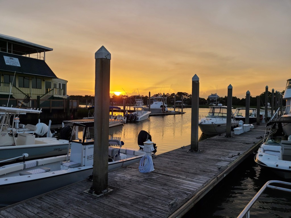 We anticipated (dreaded) the crowds we remembered from our stay at Isle of Palms four years ago; I said, “No problem, we just won’t get off the boat.” When we pulled up to the fuel dock yesterday, the staff was efficient, helpful, courteous, and took care of our needs then quickly got us tied up to our dock in a gated section of the marina. The restaurant/night spot we remembered from years ago is no longer in business, so no crowds to worry about there, but it is very busy at the boat launch and the marina market.
