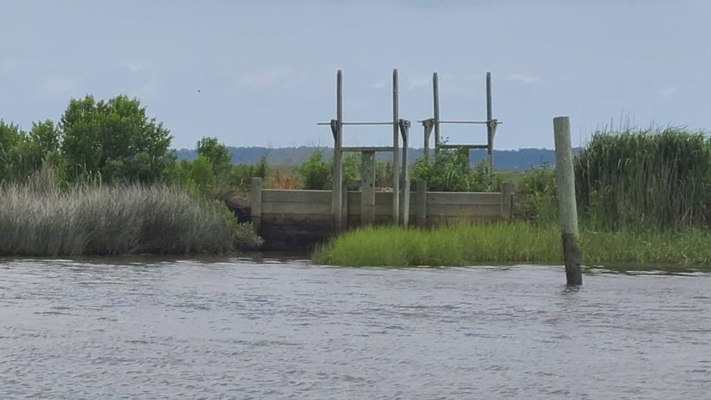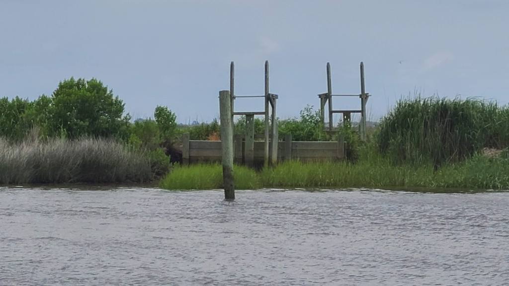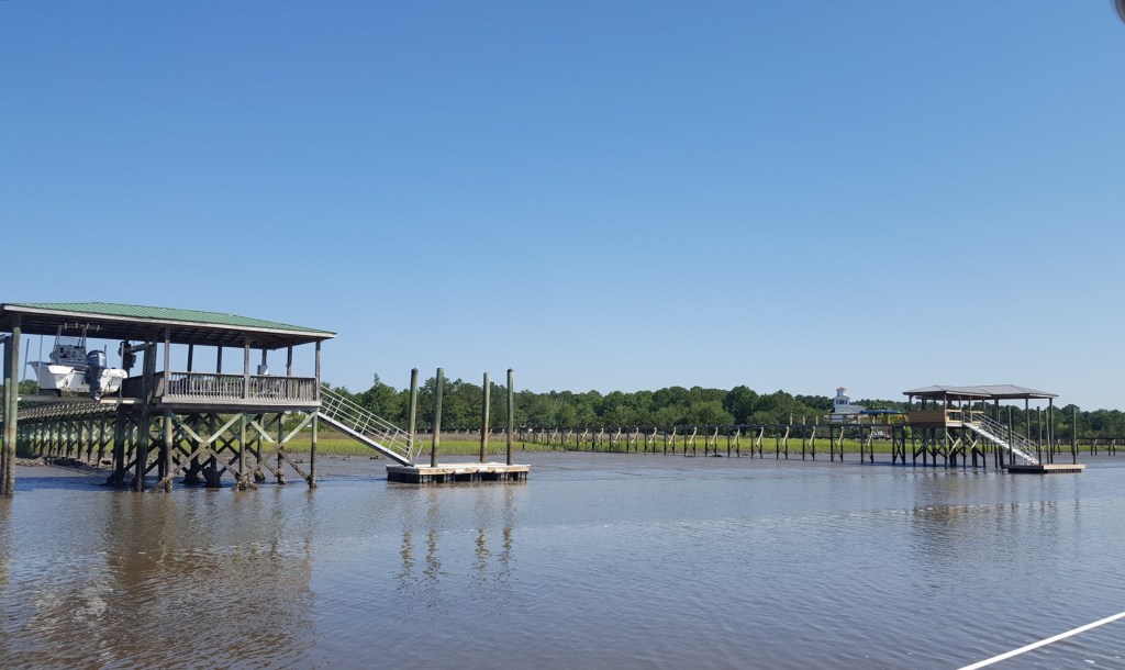 1. We draw five feet, and yesterday Doug saw 6.2 on the depth sounder. At one point in a previous passage, I saw 6.6 – hard to believe an 11-ton boat could float in so little. Poor McClellanville just gets pounded during trop. storms, hurricanes.