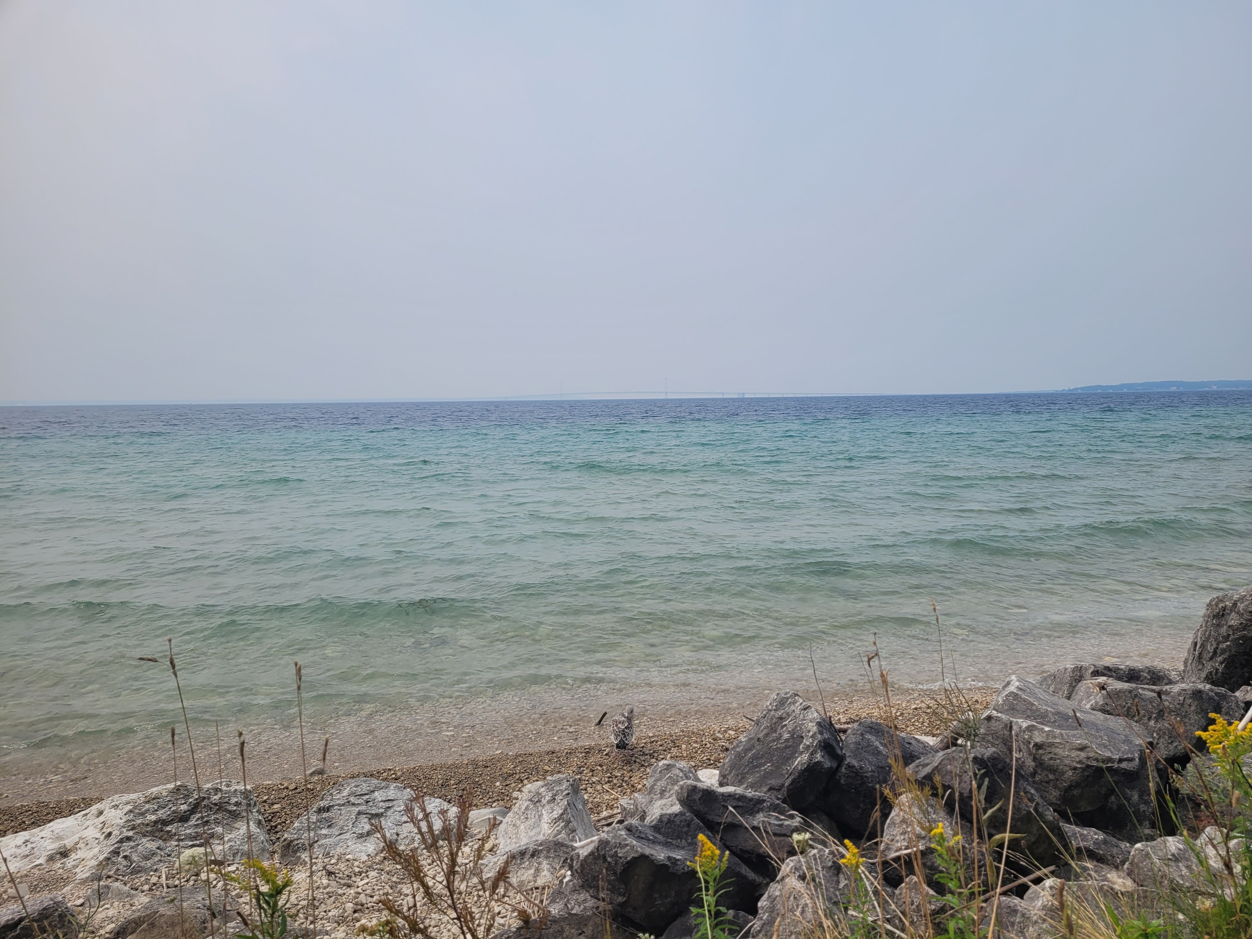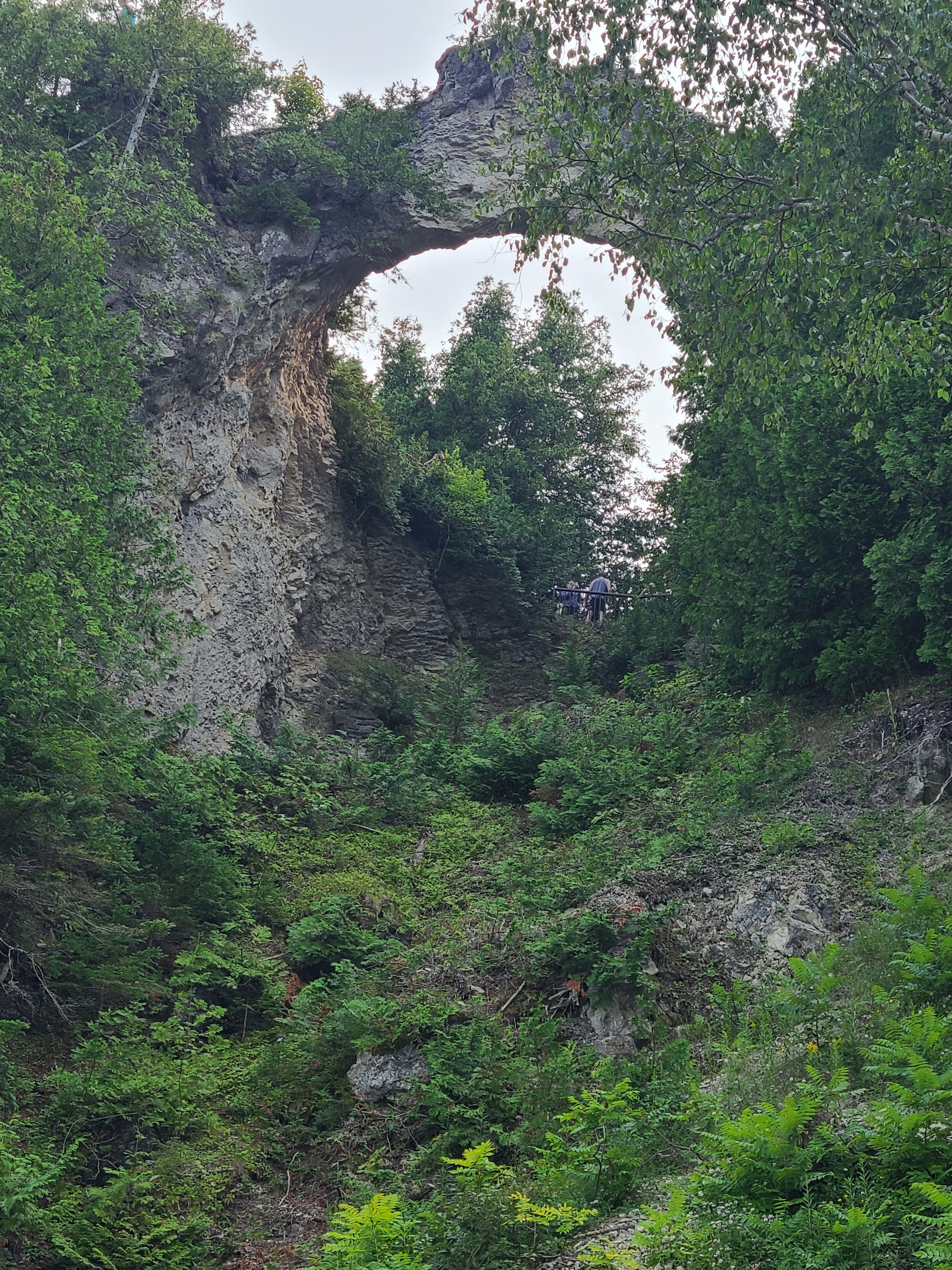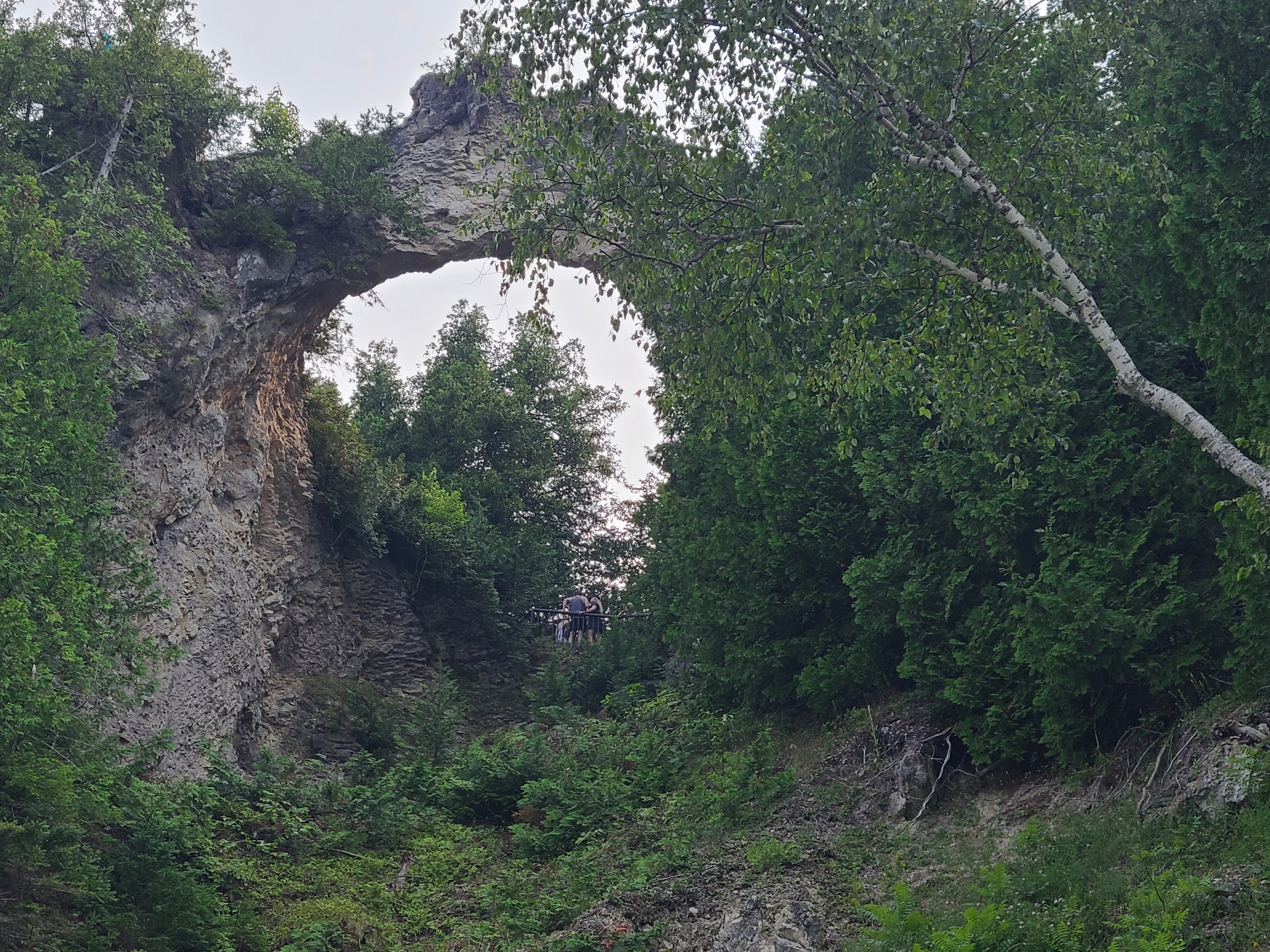 We took a lunch break at Mary’s Bistro Draught House – this was the view from our table.NO, we didn’t! 🙂This is the Arch Rock, as seen from the bike path. Had we taken a different route down the hill, we would have seen how the arch frames Lake Huron. Perhaps a future visit should be planned. We pedaled back to the ferry dock after taking these shots, catching the 5 pm ferry back to St. Ignace.