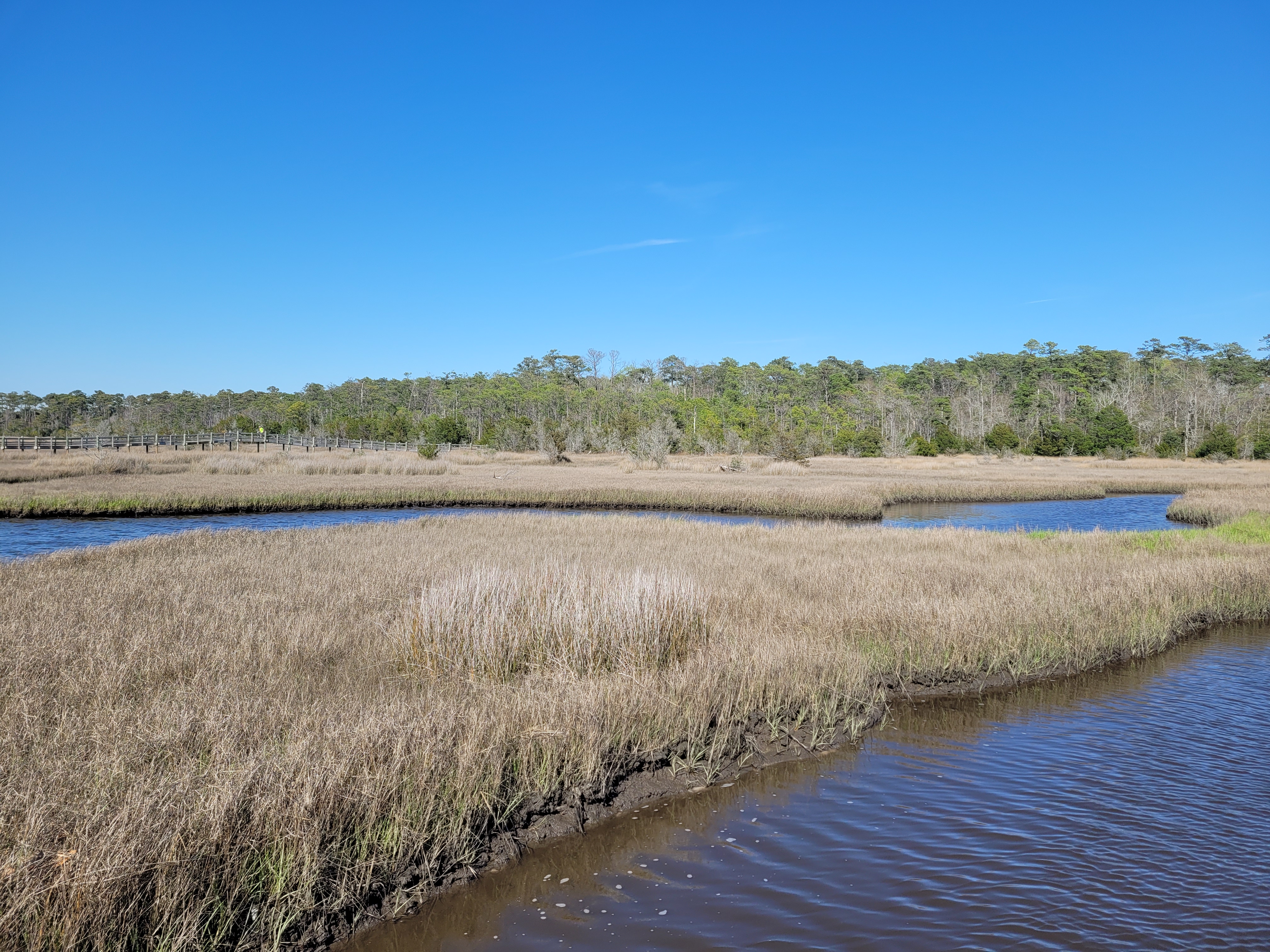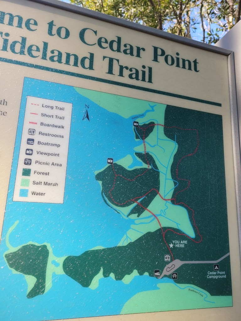 Our plans for April camping began as a quick “up and back” trip to finally use our pre-Covid concert tickets to hear Elton John. When friends Denise & Paul invited us to join them for a long weekend, our ten-day getaway became fourteen. We had beautiful weather for our stay at Cedar Point campground in the Croatan National Forest. From our campsite we could walk or bike over to the White Oak River and walk the groomed trails and boardwalks through the Cedar Point Tideland Trail.