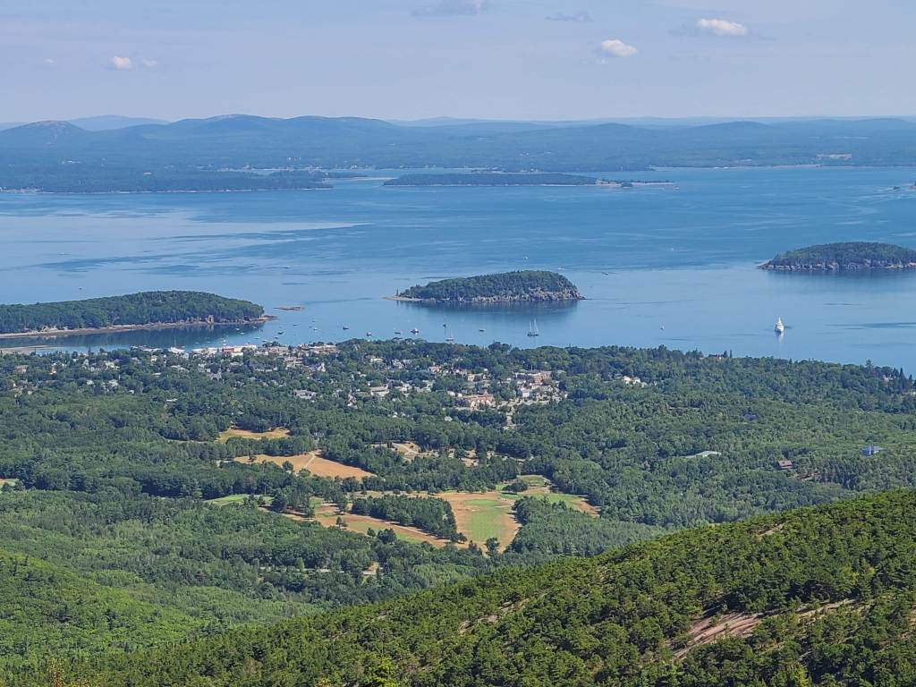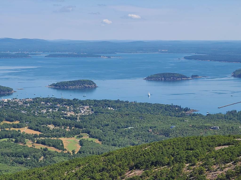 In the distance, Schoodic Point and the Schoodic Peninsula, the only part of Acadia National Park that is on the mainland.