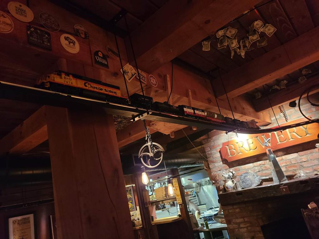 Suspended from the ceiling is track for a vintage O-gauge train which was not running that night, much to Doug’s disappointment.