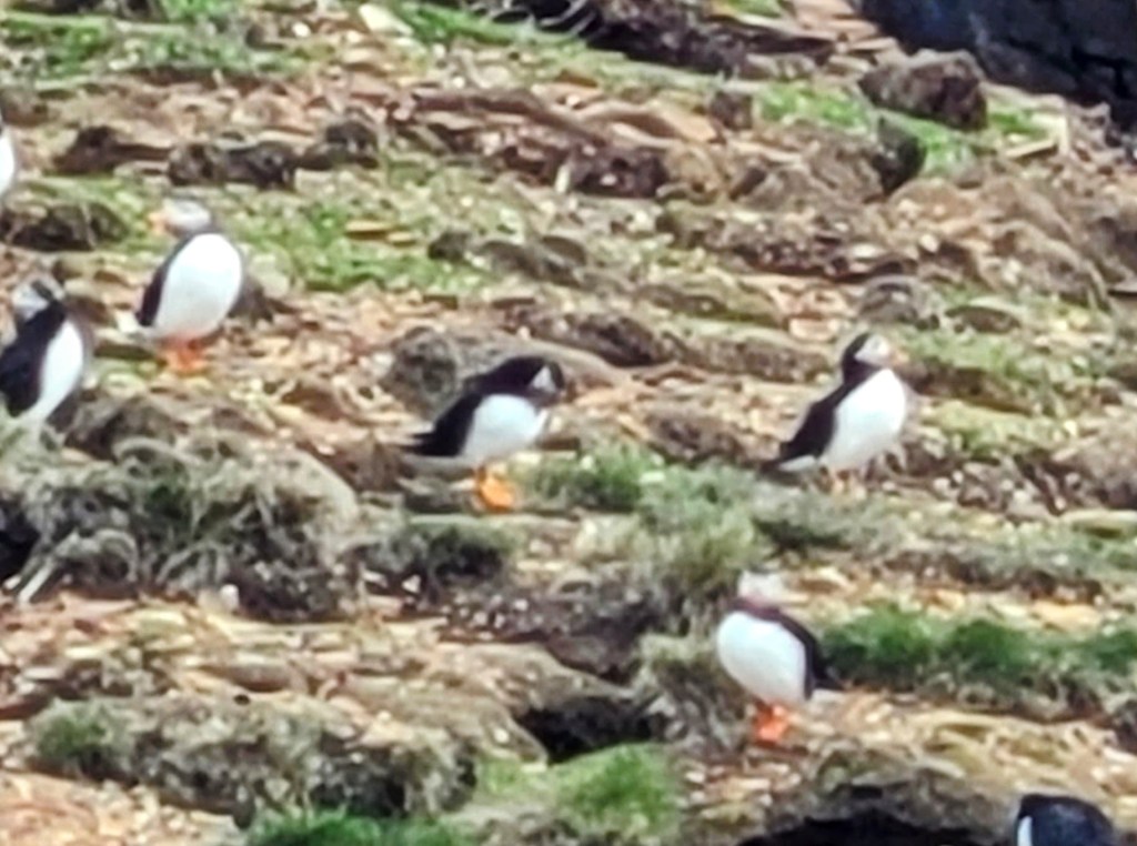 Love the pictures of the cliffs against the ocean and rocky beach. I can’t imagine how cold that water must be! So glad you got to see the puffins in all their glory.