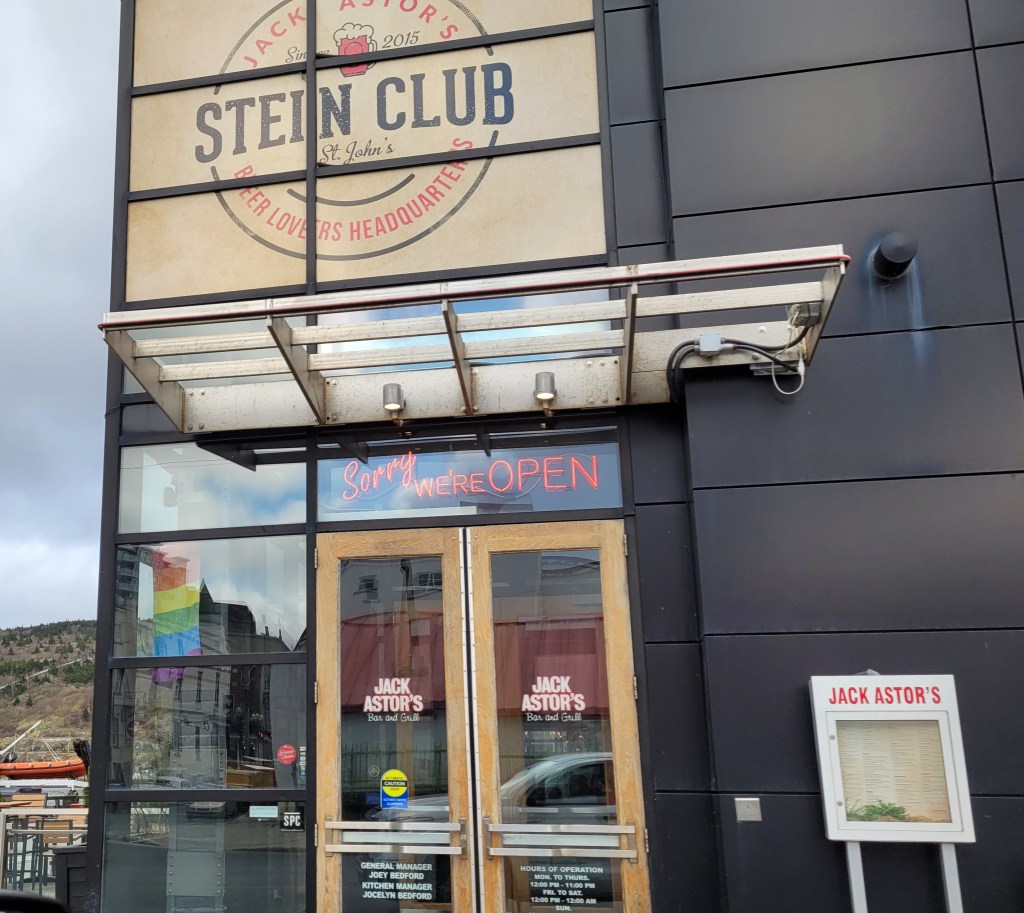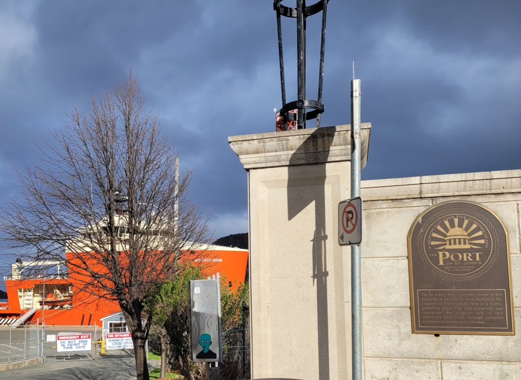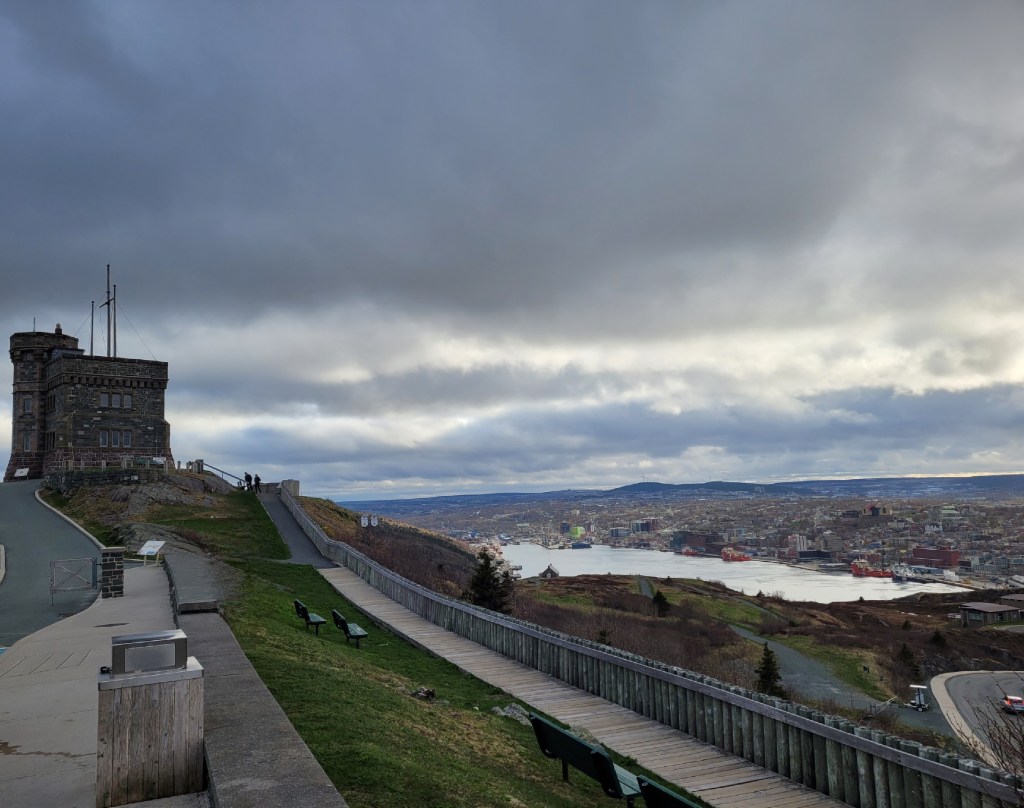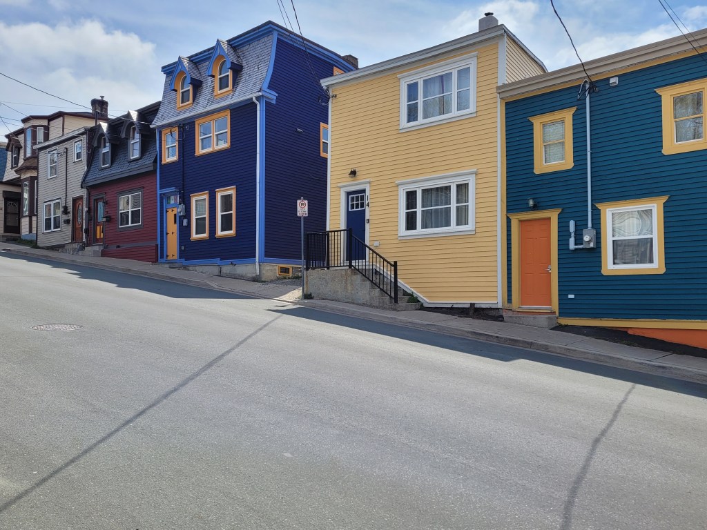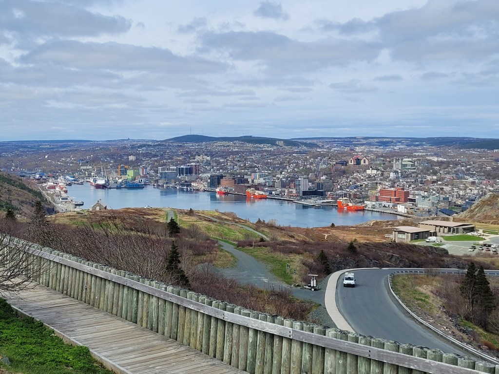 We left Eastport on Monday morning, with plans to camp on the outskirts of the City of St. John’s. Arriving at the campground, we quickly decided it was not the place for us, so we relied on the travel guidebook and its recommendation of Pippy Park Campground, right in the heart of St . John’s. It turned out to be the perfect place to see all the sights on our collective lists. Despite the cold temperatures and occasional rain and fog, we’ve been going non-stop, as the many pictures that follow will show.