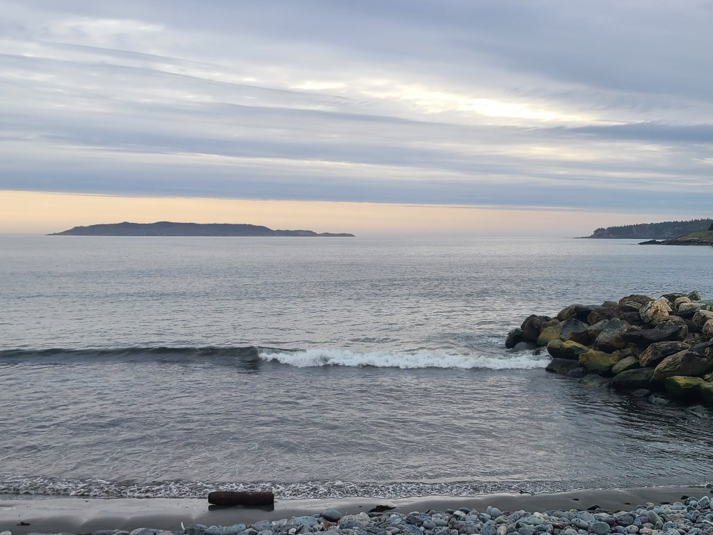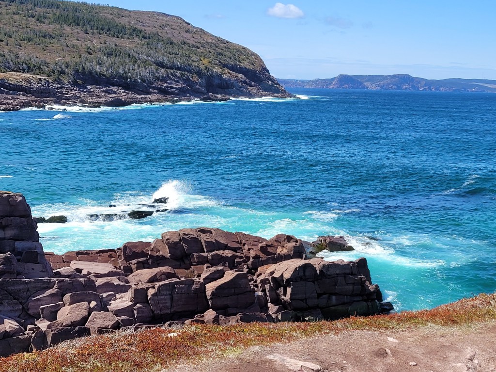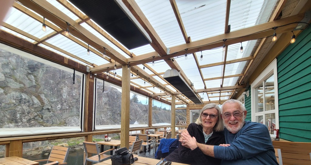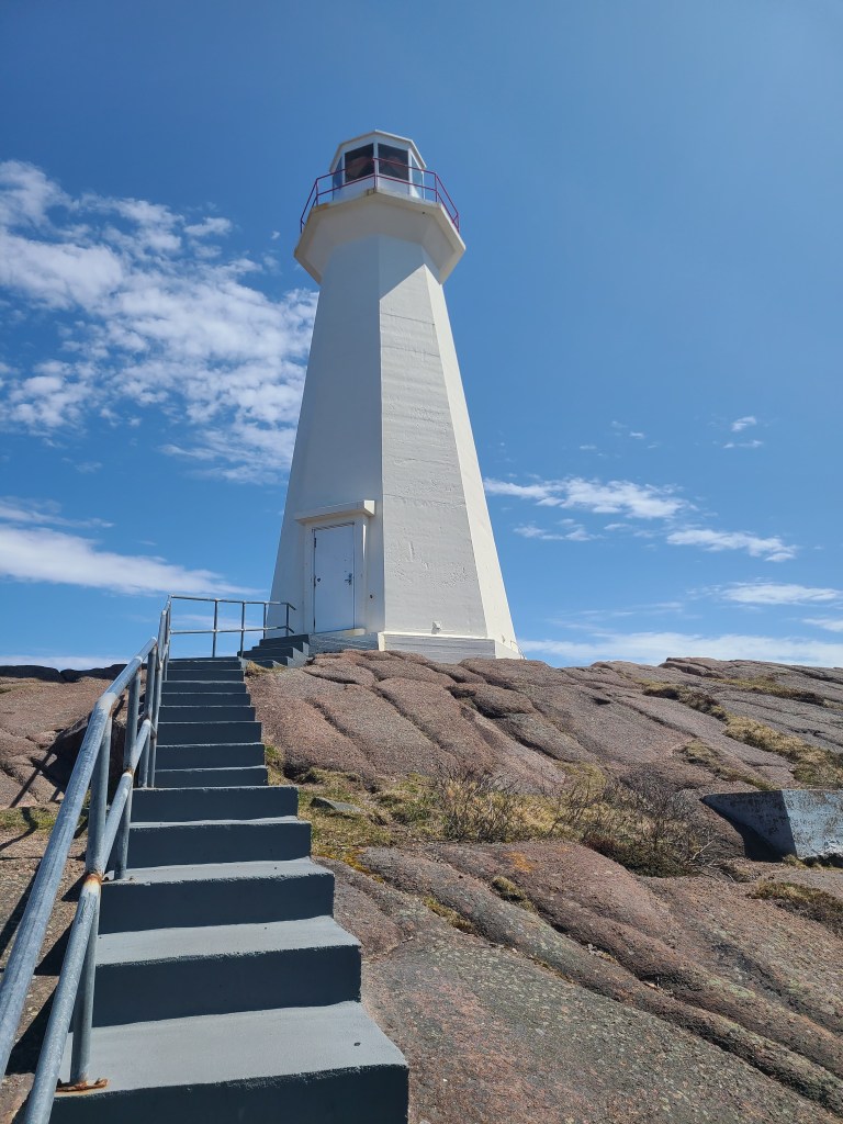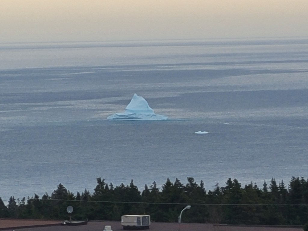 It was a struggle, but we managed to park the truck into a parking spot at the brew house, where we had the best fish & chips lunch.Dick and Sharon are happy to be here!Eager to walk after a filling lunch, we went over to the Cape Spear Lighthouse and the easternmost point in North America and Canada. There were several dozen steps to climb before reaching these last few.The lighthouse in the above picture is the second lighthouse constructed (1955); the first lighthouse was built in 1836 and deactivated in 1955.The sun on the water created beautiful shades of blue.Houses in St. John’s are colorful, whether they’re in the city or on the shoreNewfoundland has been described as “the most Irish place outside of Ireland.” On Wednesday, we drove the Irish Loop, hich covers just under 200 miles on the shores of the Avalon Peninsula. The first stop on this chilly Wednesday was Witless Bay. Hopefully we’ll see Puffins on Thursday, on our tour boat out of Bay Bulls, the next town north of Witless Bay.Our next stop was Ferryland, the unofficial capital of the Irish Shore.What a surprise to see this iceberg as we crested a hill!Driving closer to shore, we had a better view.We wanted to tour the Ferryland lighthouse, but funding cuts and fewer guides resulted in the lighthouse (and the well-known lighthouse picnics) being closed. We found this to be the case in many place, not just on this drive but during the entire month of May.
