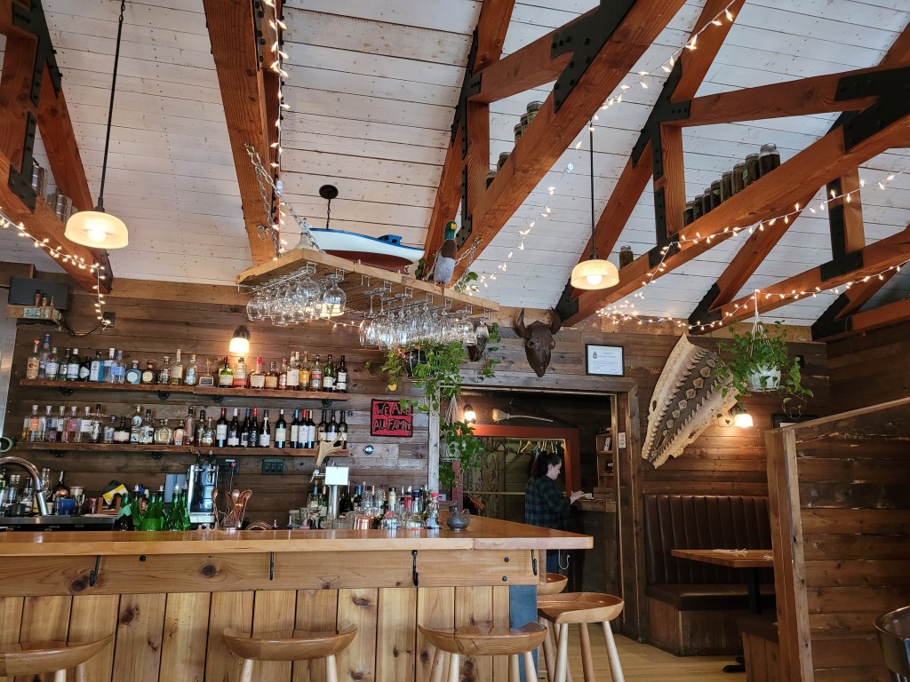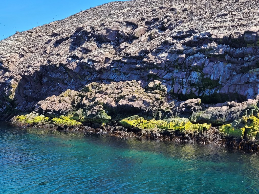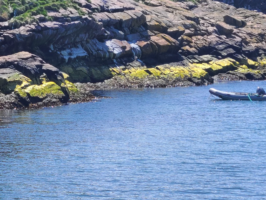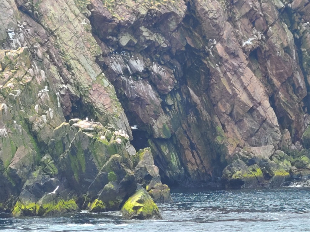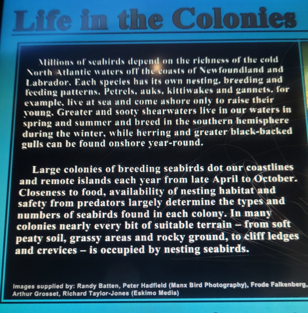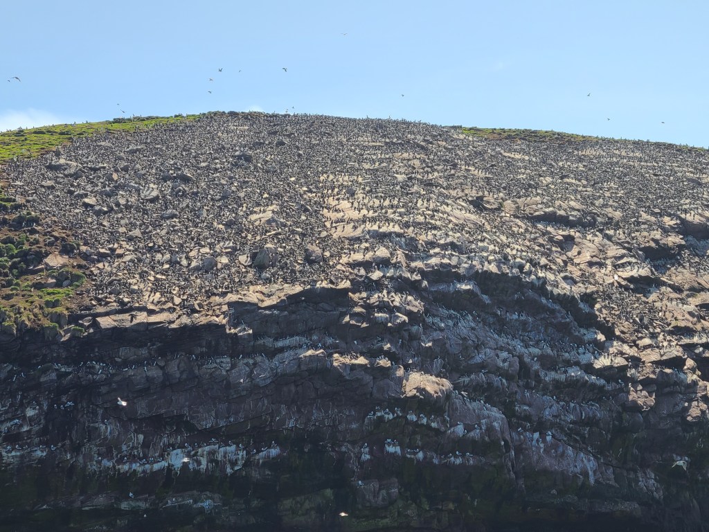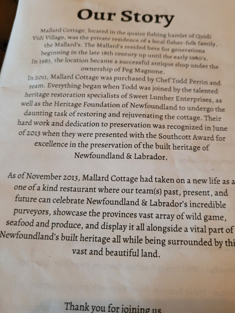 Lots and lots of layers are the required dress code for todayHeading into the Witless Bay Ecological ReserveA researcher going ashore to the observation houseThis may look like black rock, but it’s actually thousands of black birdsOur tour was made complete by two sightings of 1 (or 2?) Minke whales just as the boat started going back to port. You’ll have to trust me on this (proof is the people who ran to the boat rail) – it’s very hard to watch and take pictures simultaneously. πBack on shore, we drove back to St. John’s for lunch at the historic Mallard Cottage.
