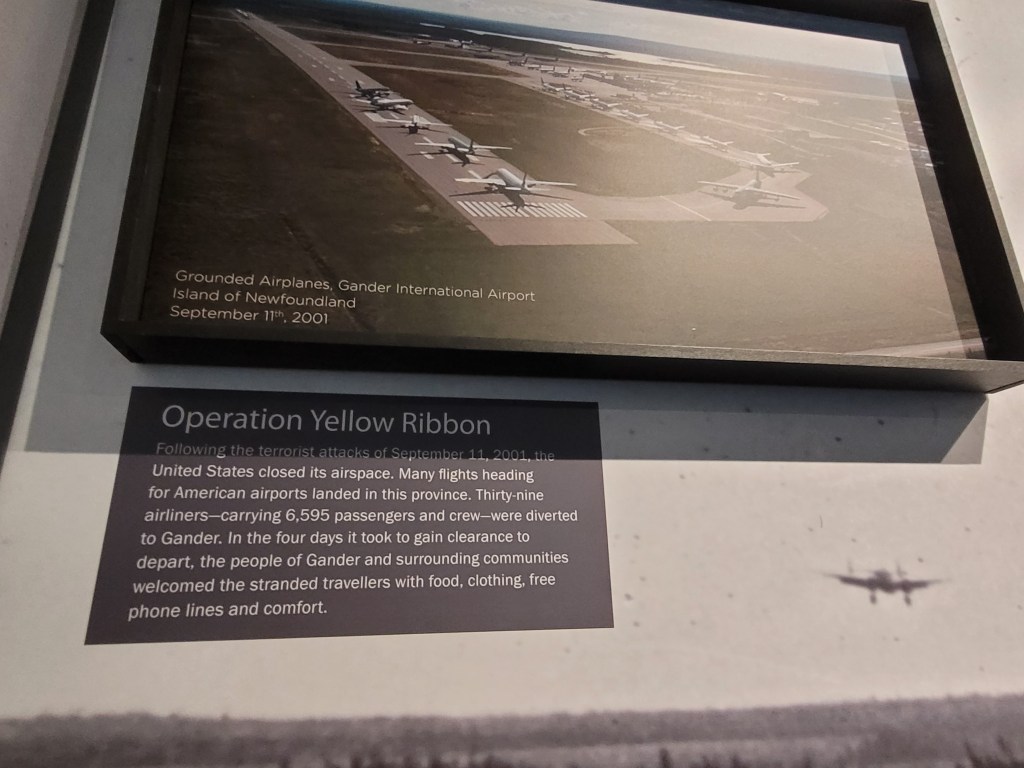 This is a picture of Water Street, the same street where the Newman Port Cellar is located.In 2001, civilian airline flights were diverted to Canada on 9/11. This picture shows Gander Airport in Newfoundland, which received aircraft with over 6,000 passengers and almost 500 crew, who found shelter and hospitality here until airspace was reopened.