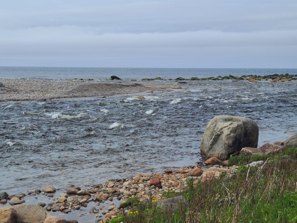 Baker’s Brook empties into the ocean, reminding us of the Pajaro and Russian Rivers in California.