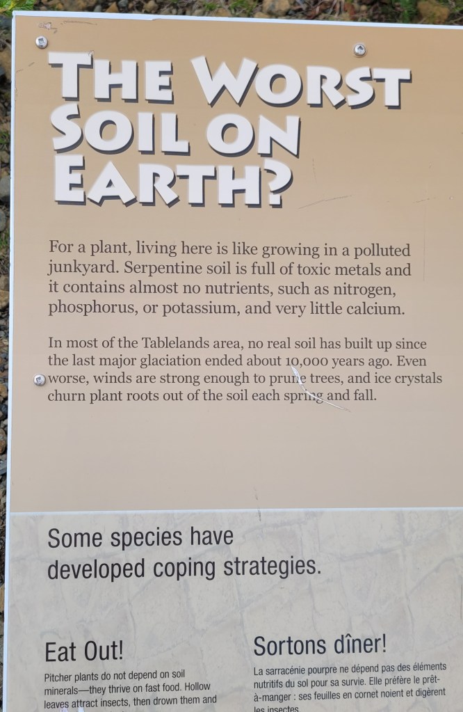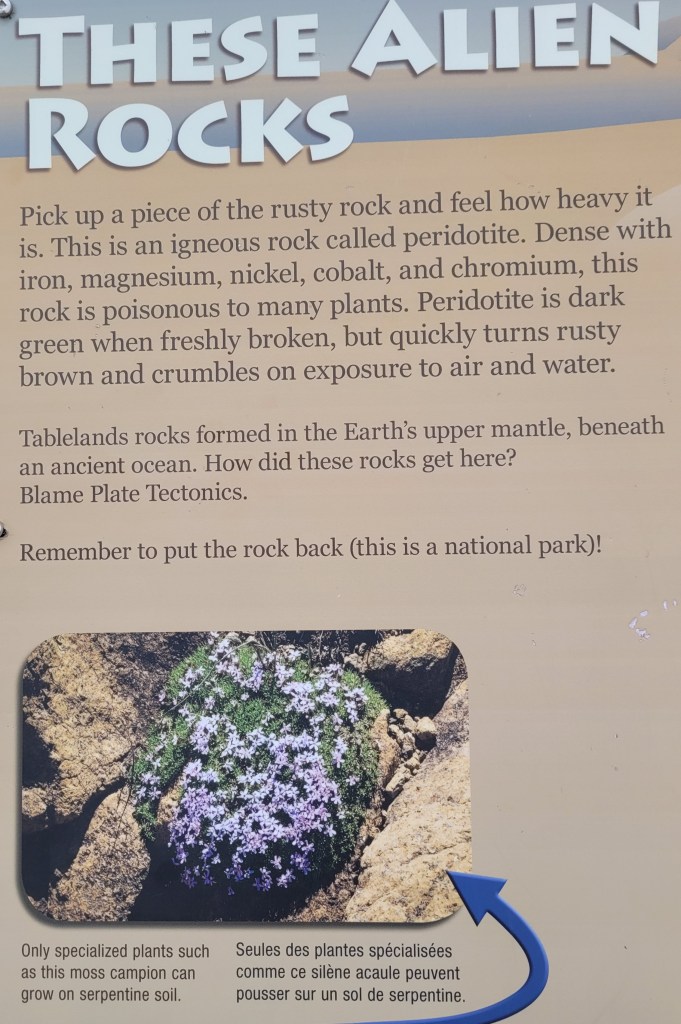 We were encouraged to stop at Tablelands for a feeling of walking on the moon’s surface. It is one of only a few places on earth where mantle rock (what was the middle layer of earth) lies exposed on the ground and is accessible to visitors.
