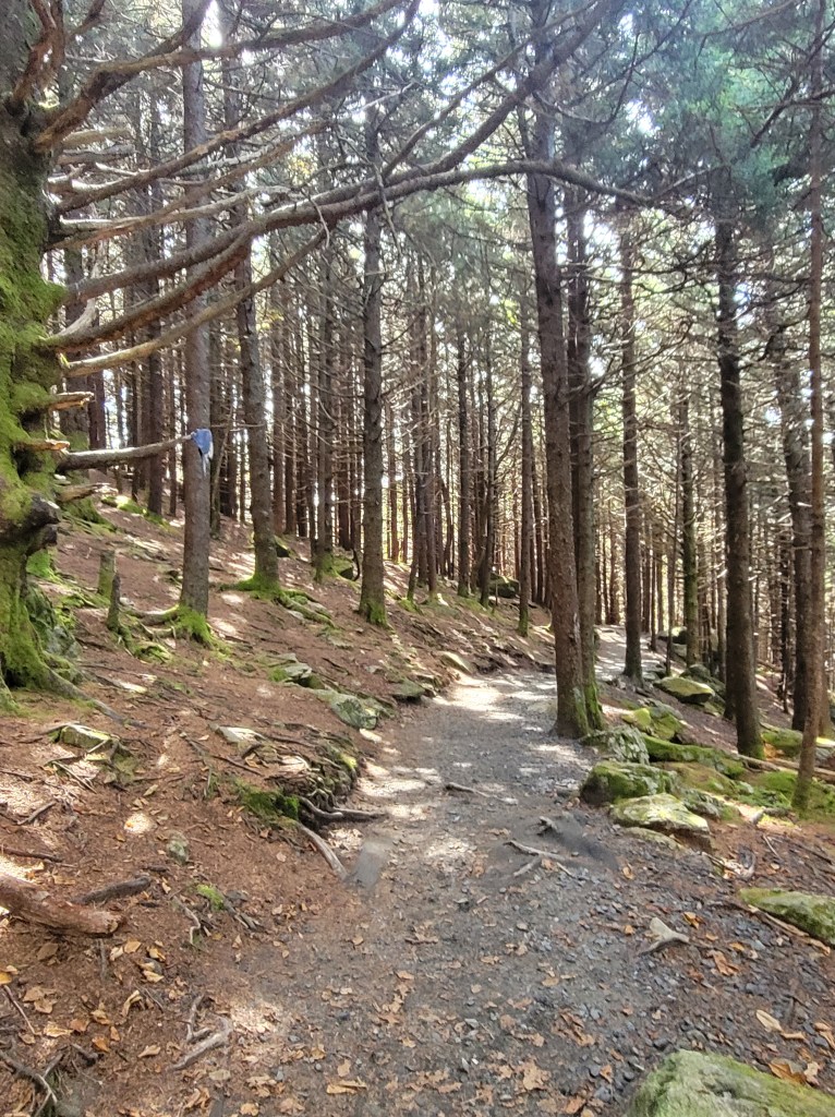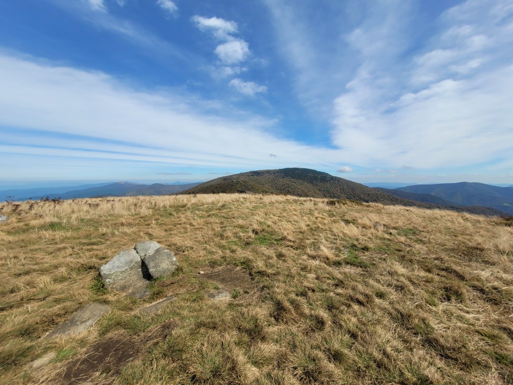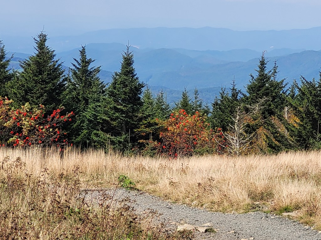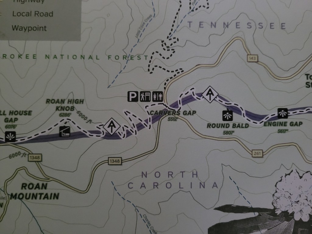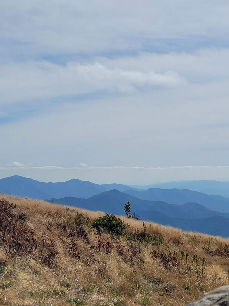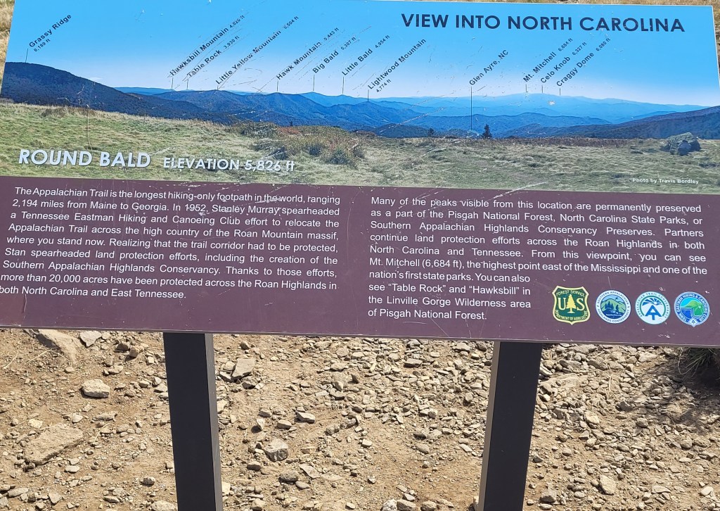 The last time we were here (4/21), we were only able to spend a few minutes on the Appalachian Trail because it was so cold and windy. On Thursday, we were able to change that with a two-mile hike from Carver’s Gap to Round Bald, with perfect weather.