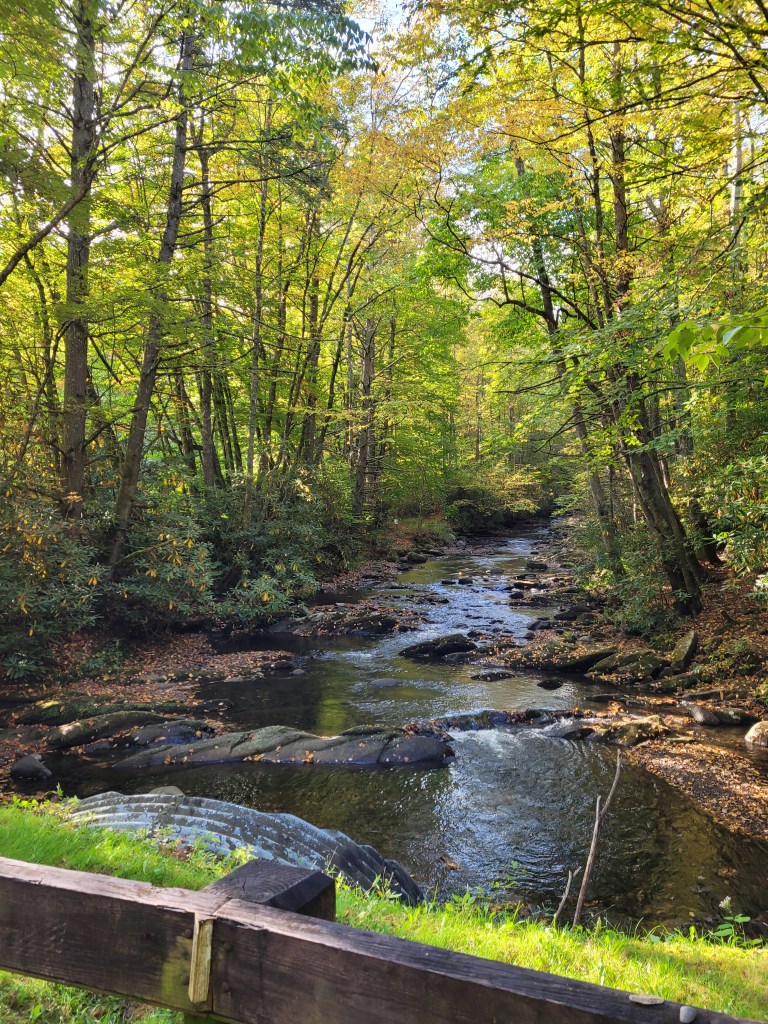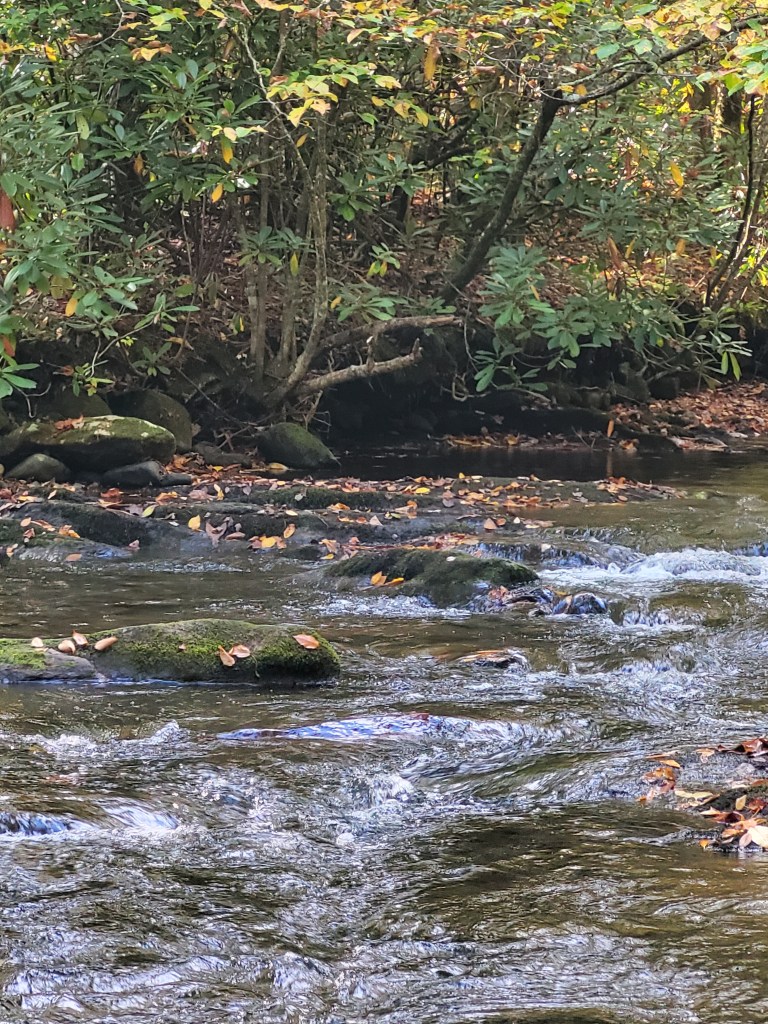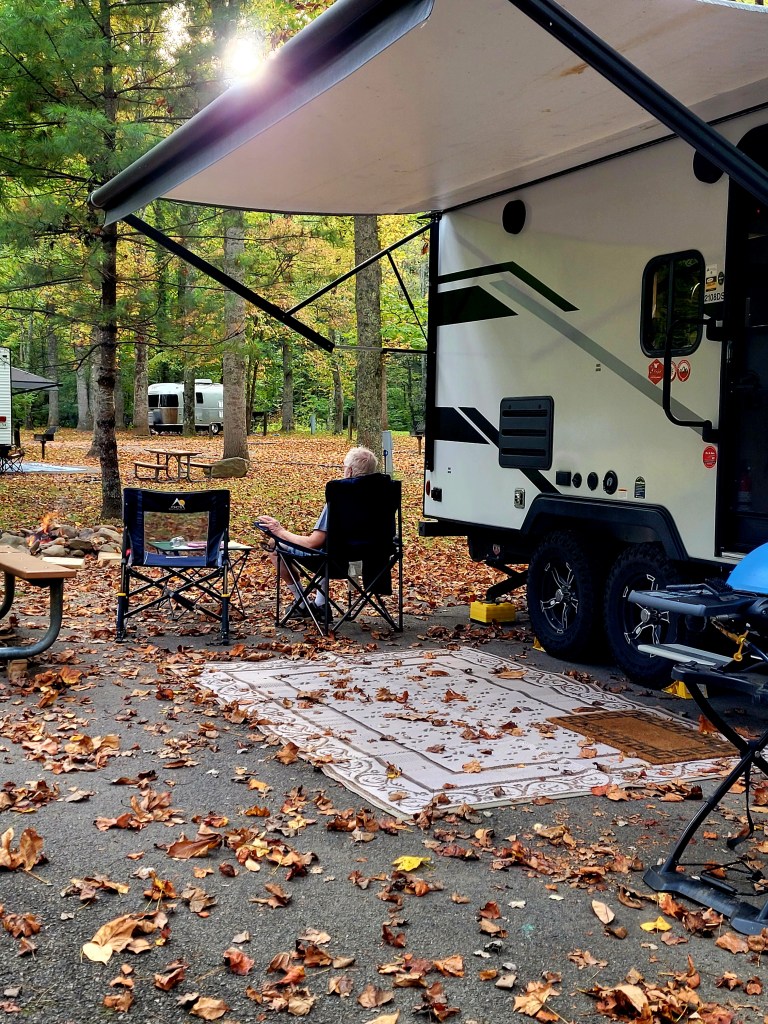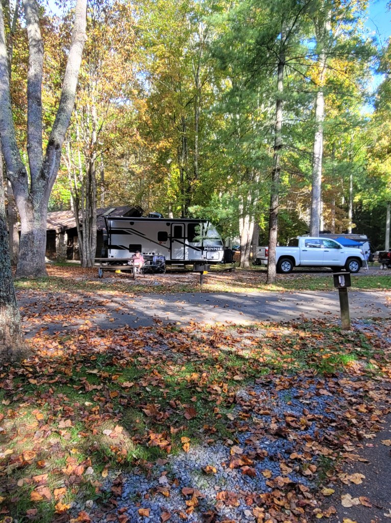 It’s now Friday evening, and we’re in Fancy Gap, VA. Tonight’s low will be in the 40’s, but tomorrow’s temperatures are supposed to be in the 50’s with plenty of sunshine. We hope to go to New River State Park and take the easy hike from Foster Falls to Shot Tower (and back).