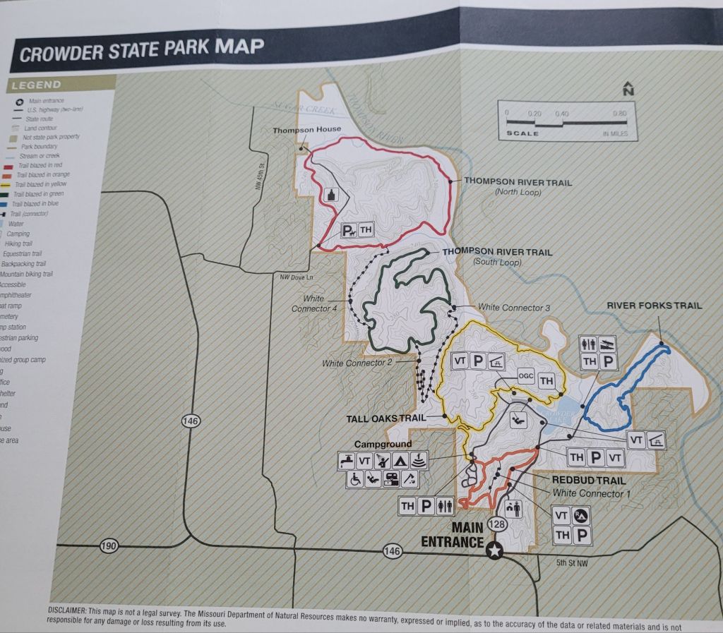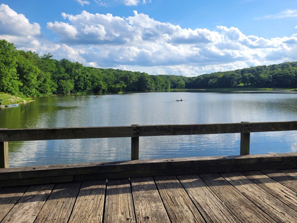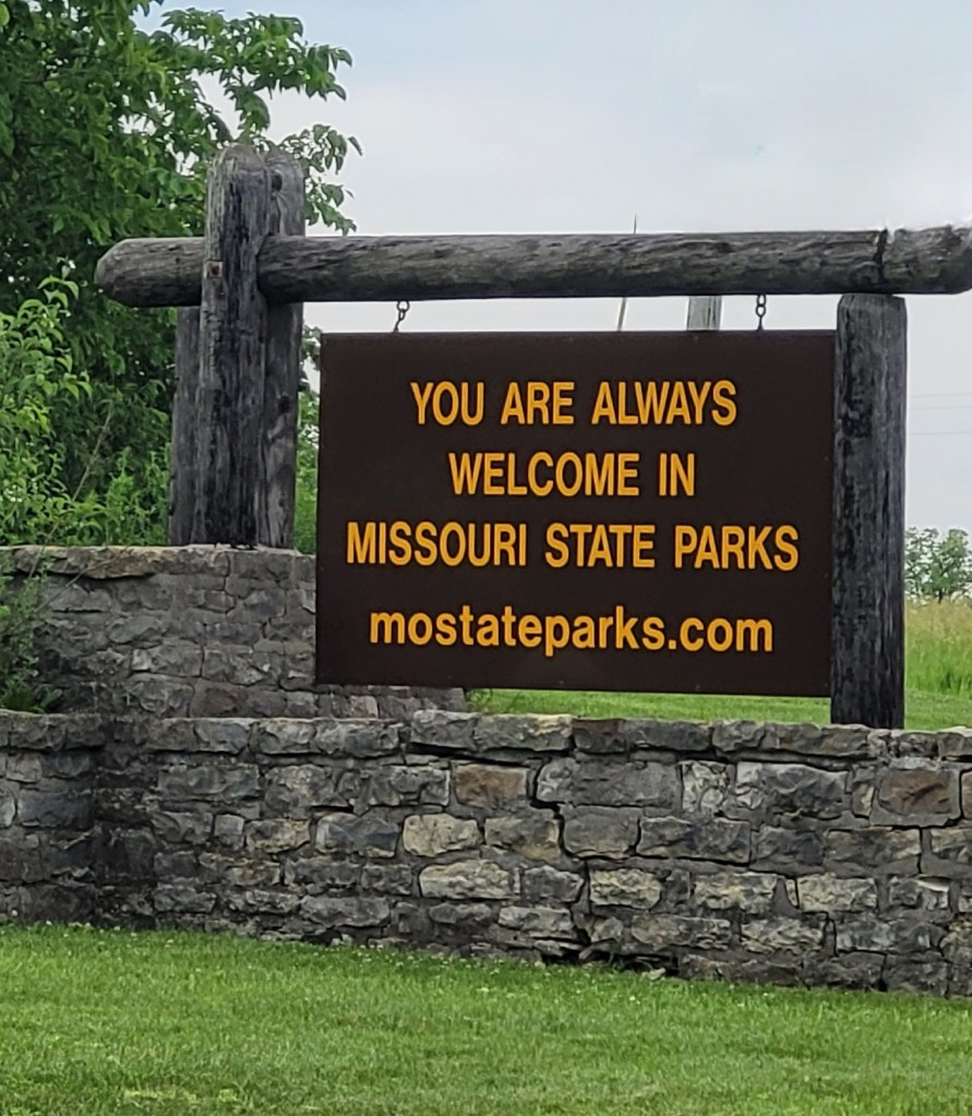 We arrived at Crowder State Park (in northern Missouri) on Saturday (6/1) around 4 pm, after a rainy drive. The site we reserved only had electric service, but given the late hour, we were offered one with full hookups (few available at this campground). After getting settled, we drove around this pretty park.