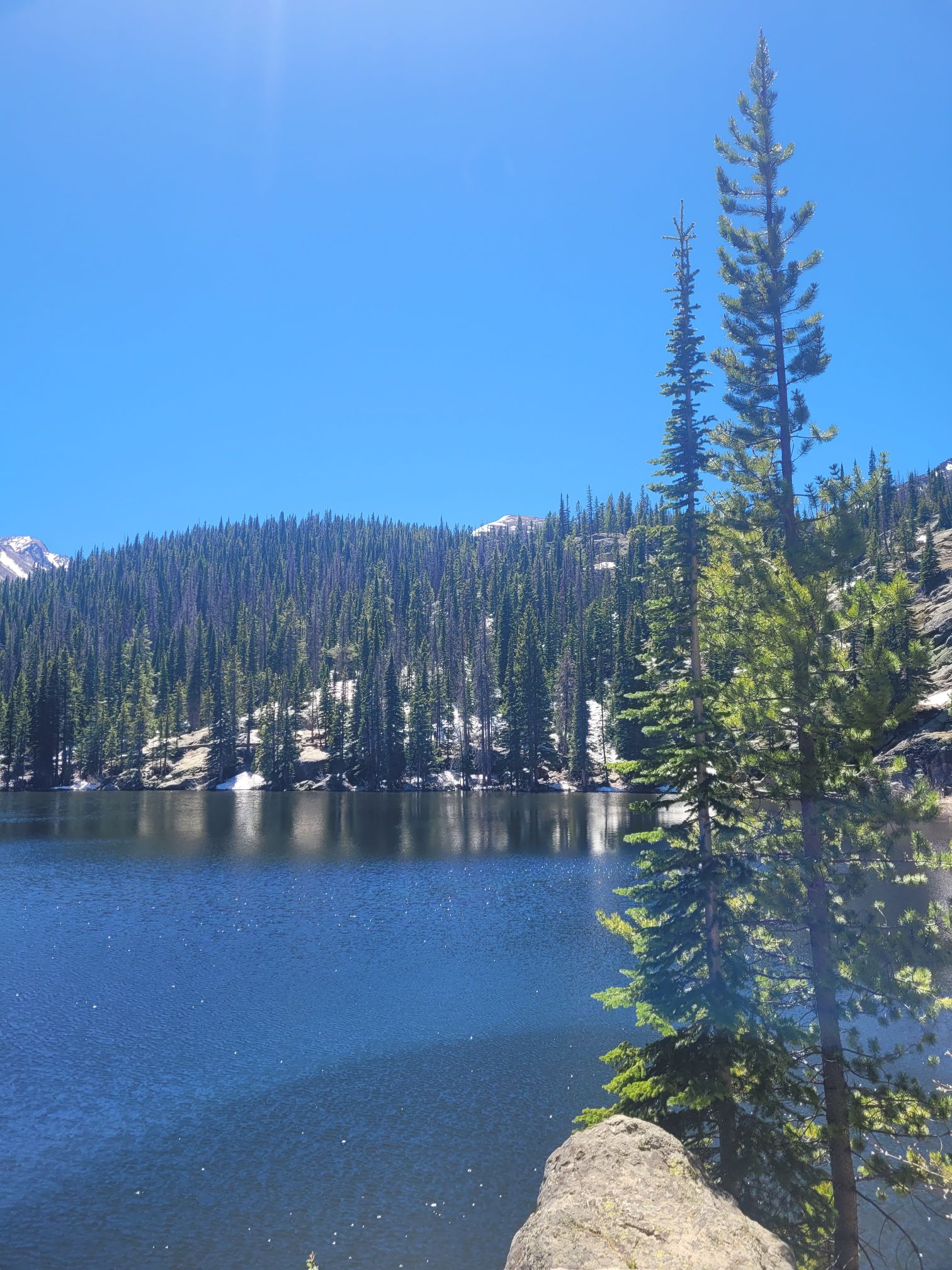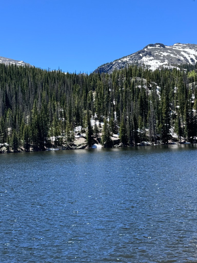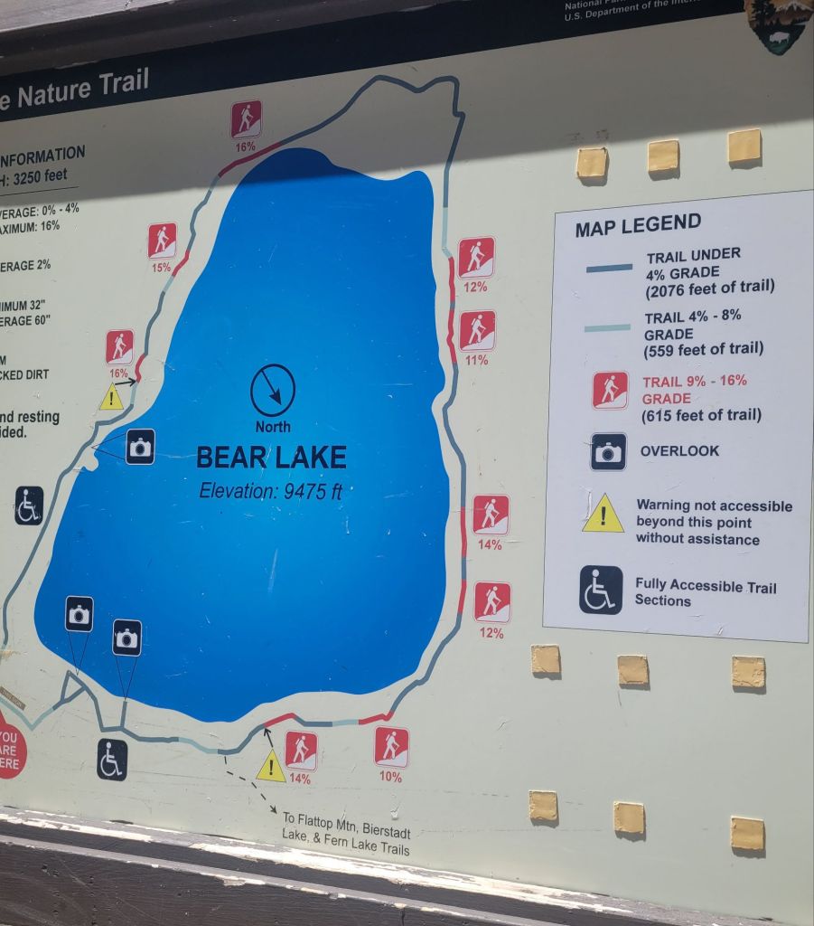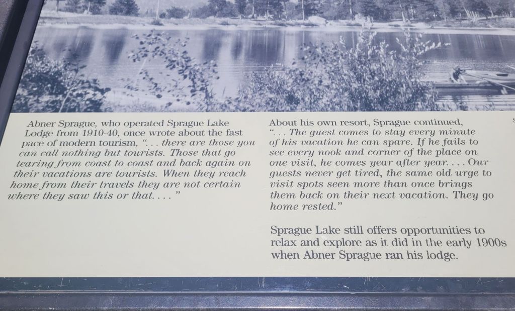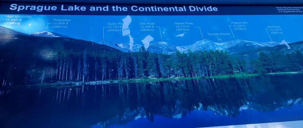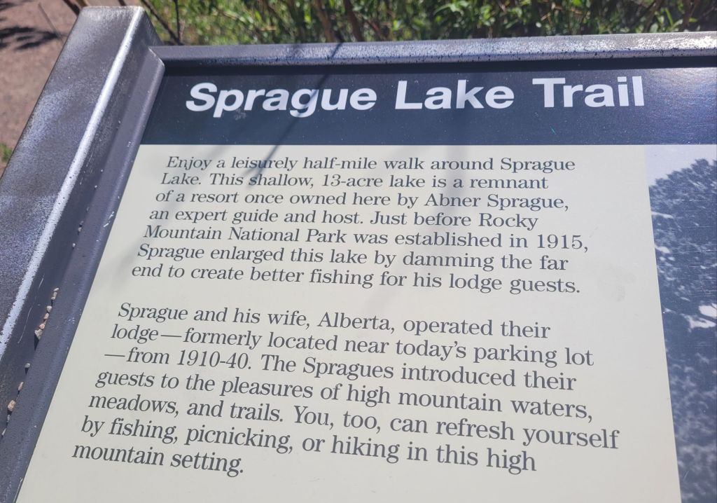 After going through the guard gate at our assigned hour, we drove the entire length of Bear Lake Rd., stopping at Sprague Lake for a walk along the 3/4 mile lake trail.