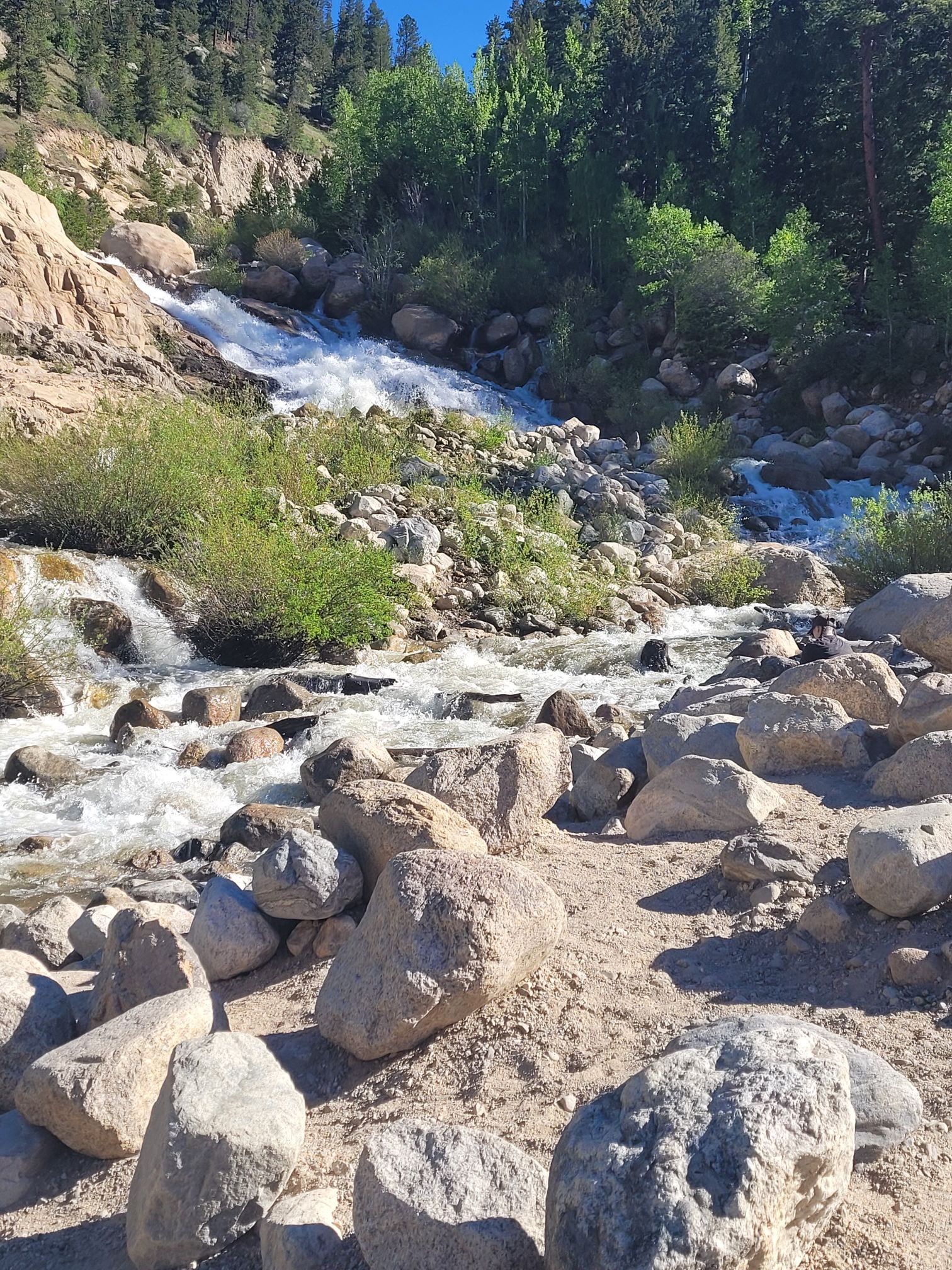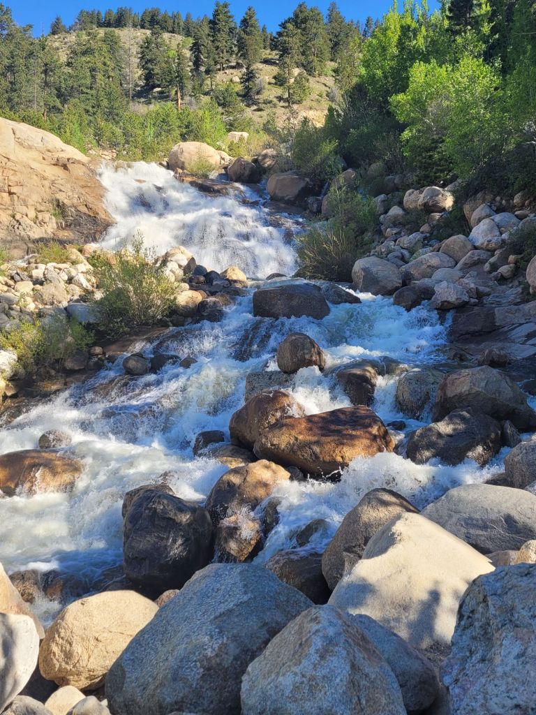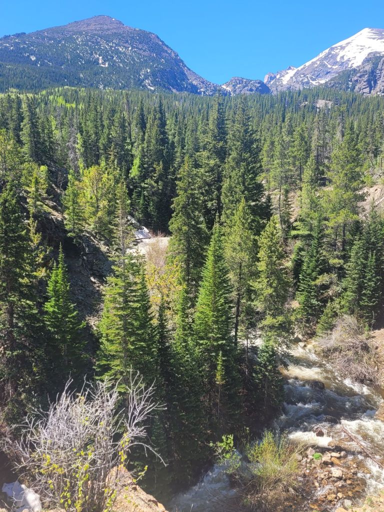 We had another morning reservation, this time for entry into the Bear Lake Corridor, the most popular area in the park. Arriving early, we had plenty of time to start our day with a walk along the Alluvial Fan Trail to see the rushing waters from Ypsilon Lake and Lawn Lake, both at approximately 13,000 ft. elevation.