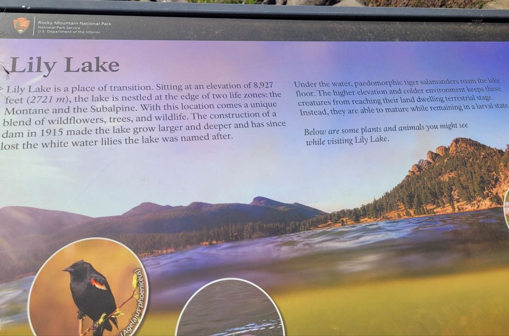 One more Lake to go before the end of the day, and that’s Lily Lake (another outside then back inside-the-park destination). According to an article in one of the visitor’s guides, there are lots of wildflowers here.