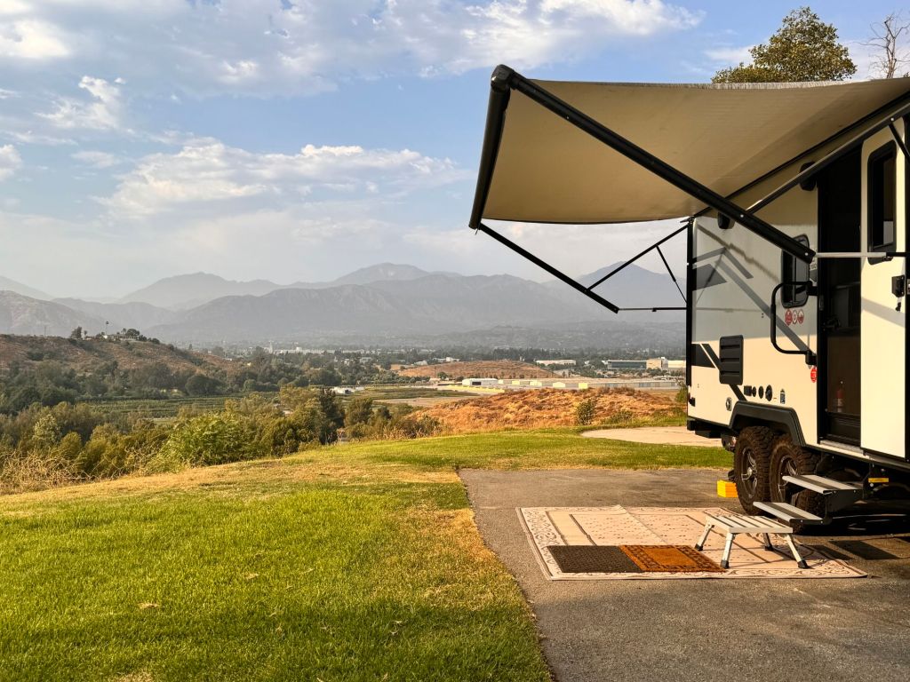 This is our campsite at Bonelli Bluffs RV Park in San Dimas (outside of L.A.).  We have another lunch date set with Kathy, my friend from our Stanford working days, who lives nearby in Pomona.