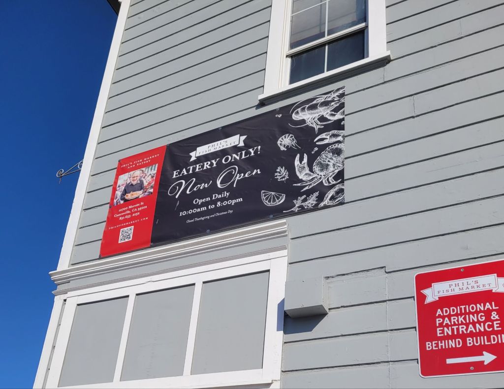 I mention Salinas in this title, but we actually spent very little time there, other than sleeping in our camper and doing laundry at the KOA.  The first place we went after getting settled in our campsite was Phil’s Fish Market.  We were happy to see that some things haven’t changed since 2007 (other than the store and restaurant moving up the street from Moss Landing to Castroville).