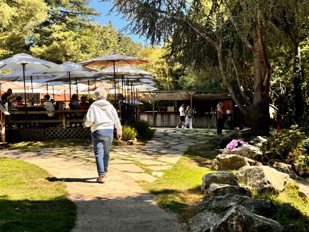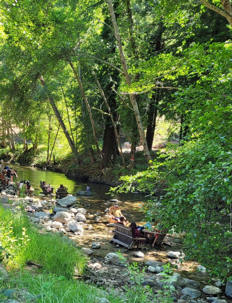 On Sunday, we drove to Big Sur since Hwy. 1 was finally opened as far as Julia Pfeiffer Burns State Park.Β  We were elated to see the sun shining as we got closer to The Big Sur River Inn – the marine layer has hovered over the area since our arrival on Friday (and has triggered my asthma).