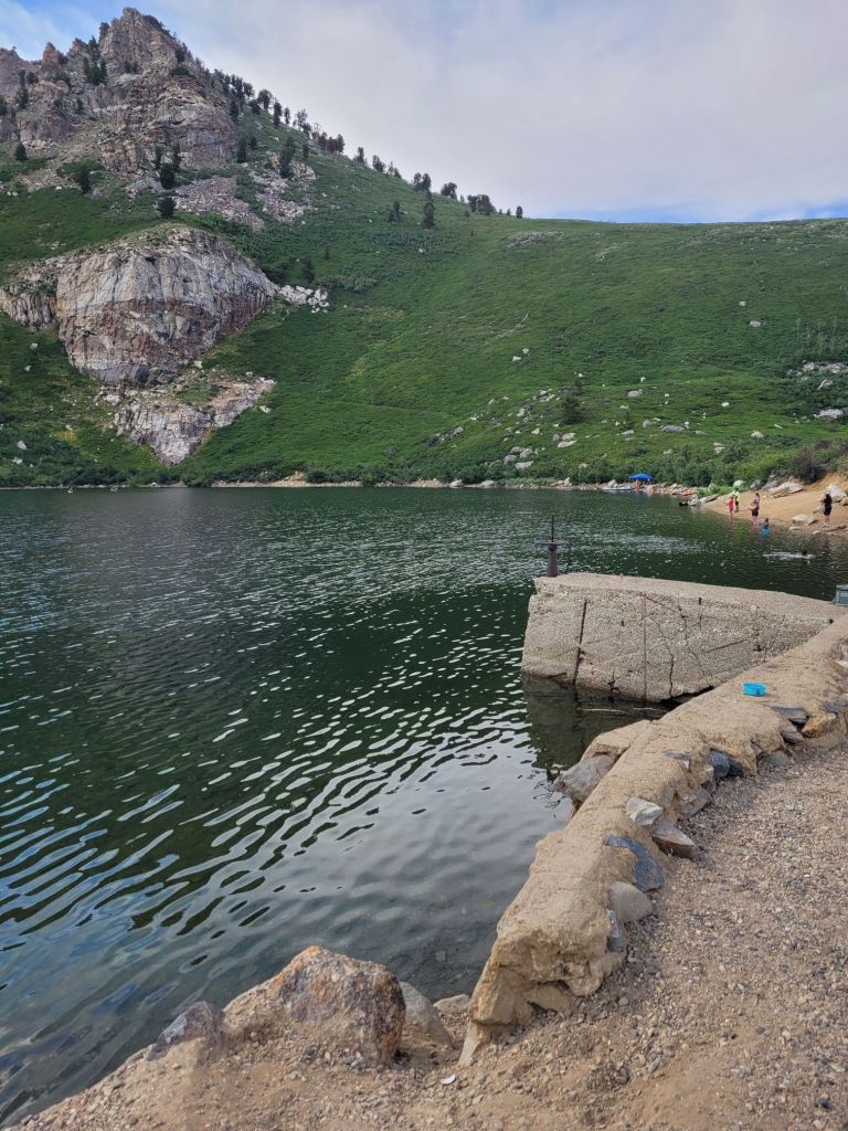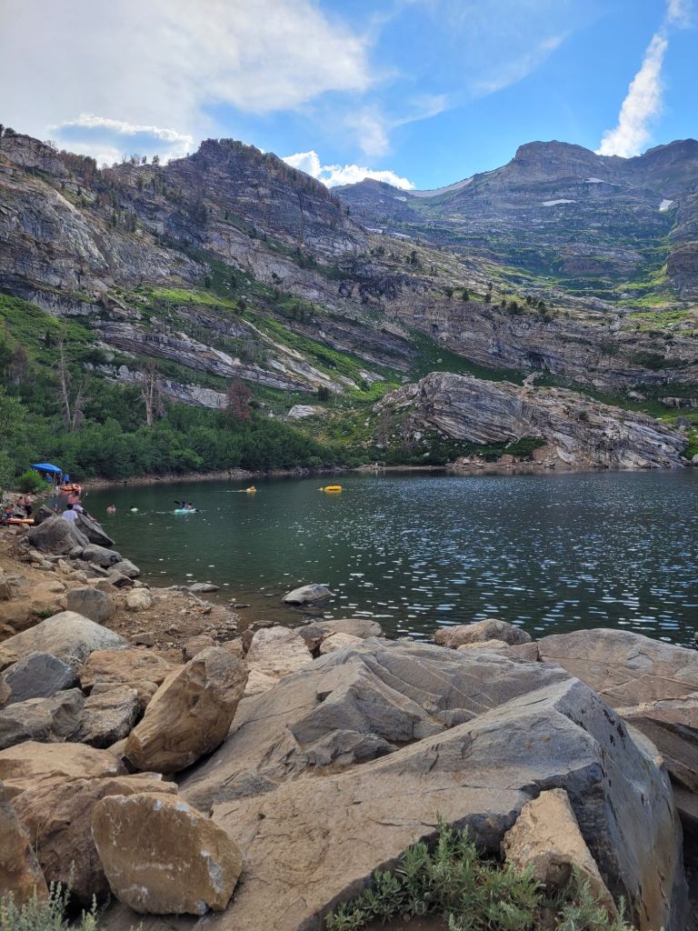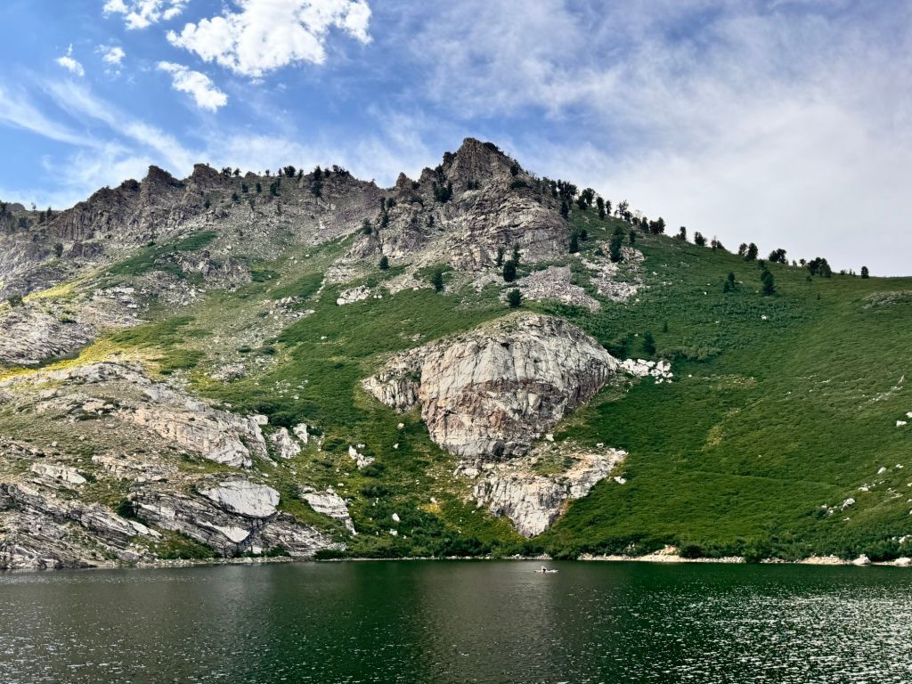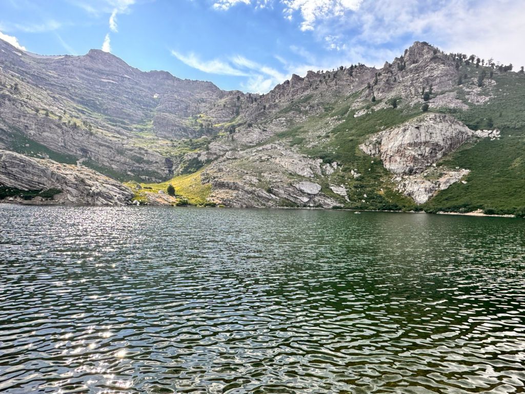 The drive up to the lake is 12 miles on a two-lane road without guardrails.  The lake is at an elevation of 8,378 ft. in the East Humboldt Range (specifically, in the Ruby Mountains).