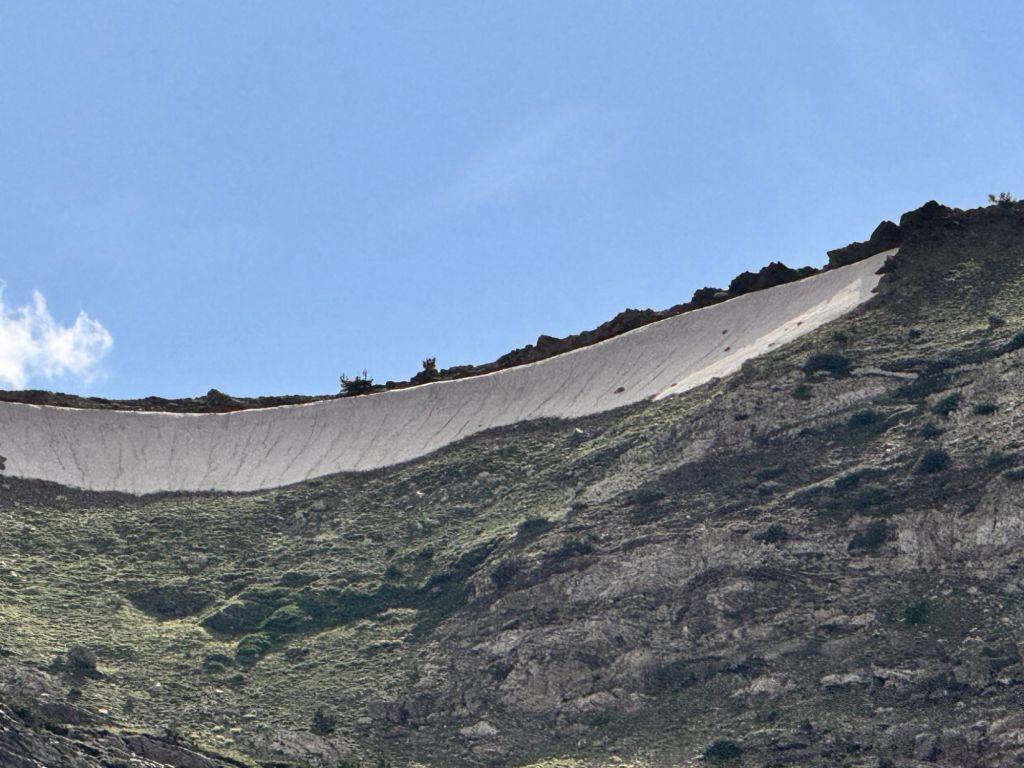 The small patches of white towards the top of the mountain on the left are, in fact, snow.
